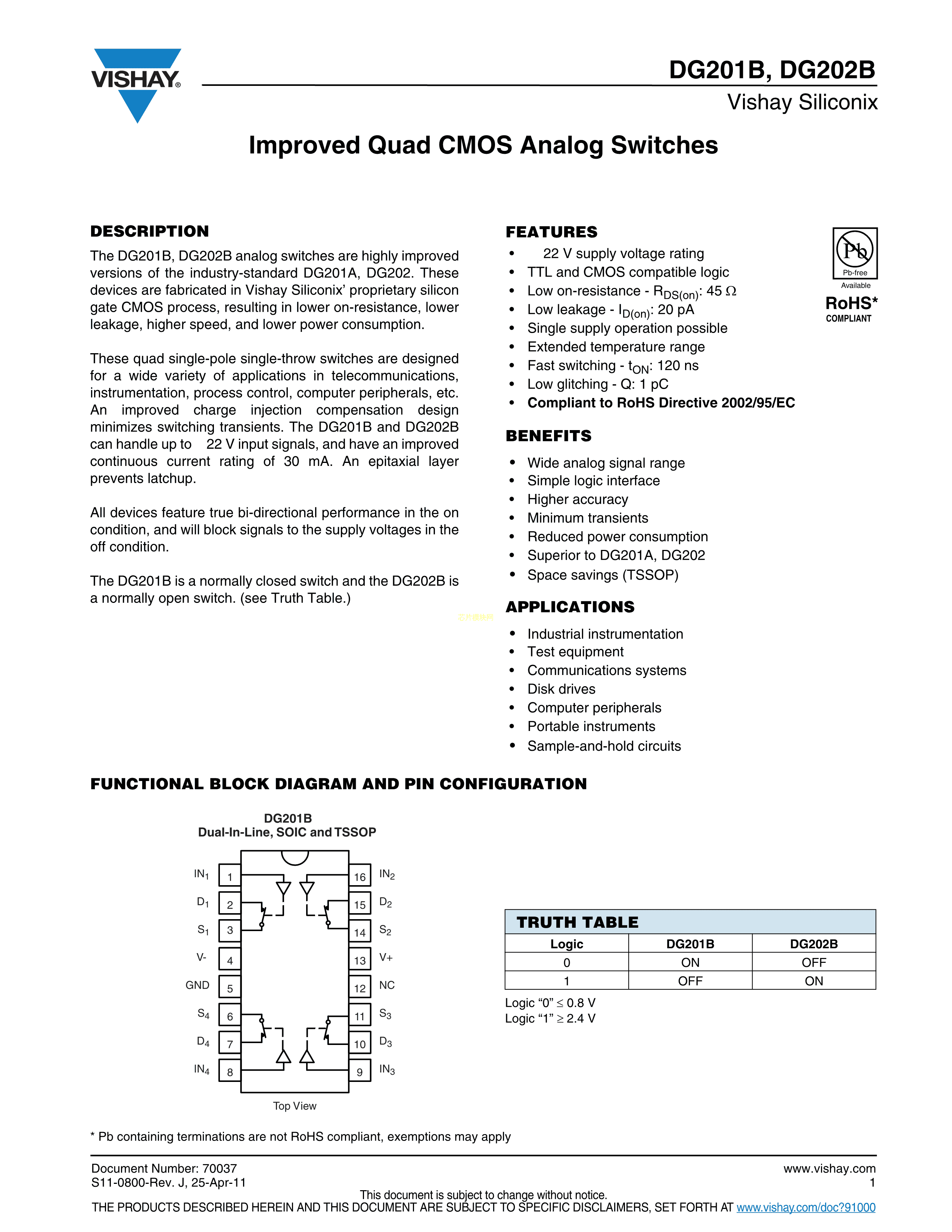 DG201BDJ-E3数据手册DIP-16封装VISHAY(威世)PDF规格书,中英文下载