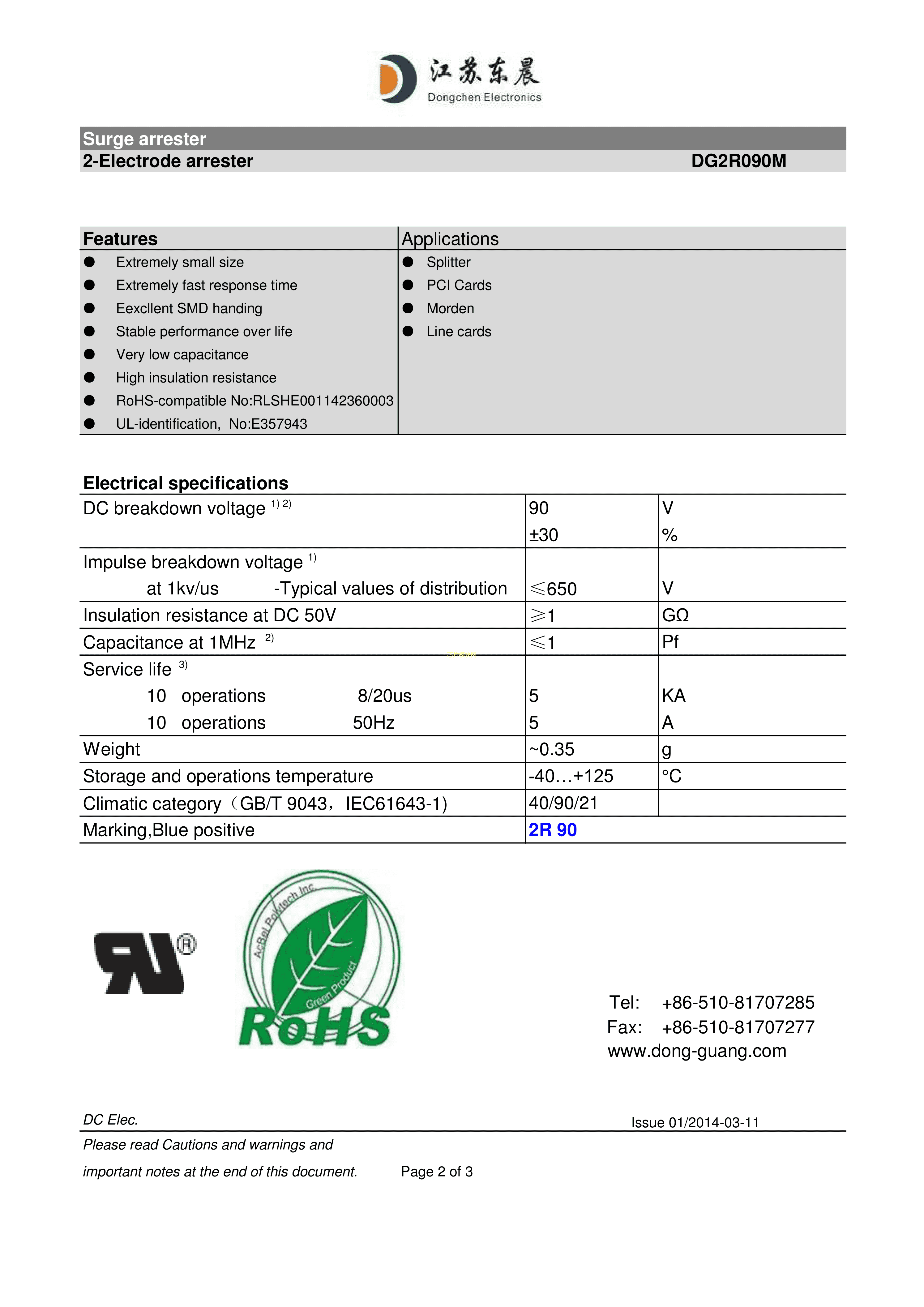 DG2R090M数据手册SMD5.4x5mm封装DC(东晨)PDF规格书,中英文下载