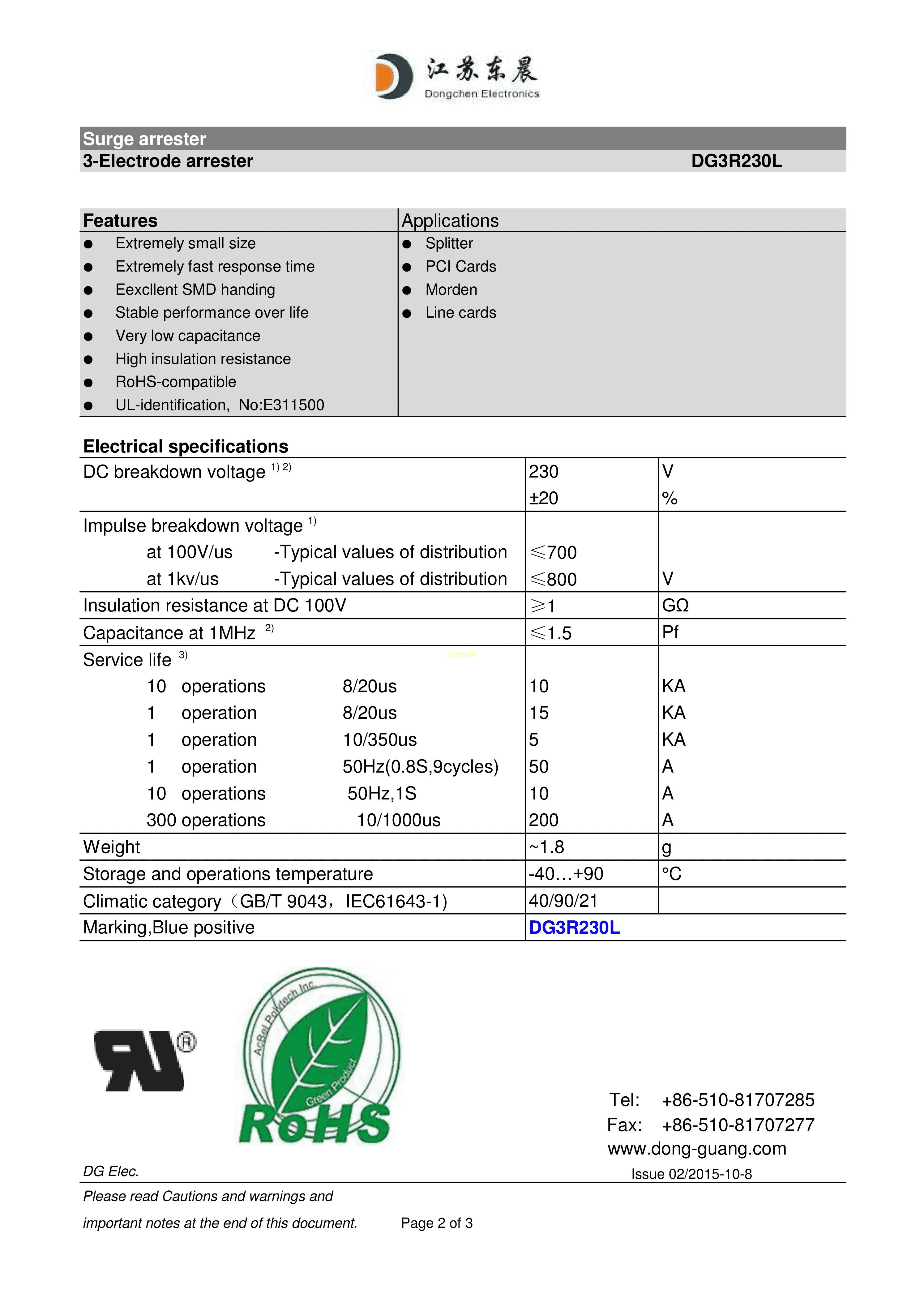 DG3R230L数据手册轴向引线8x10mm封装DC(东晨)PDF规格书,中英文下载