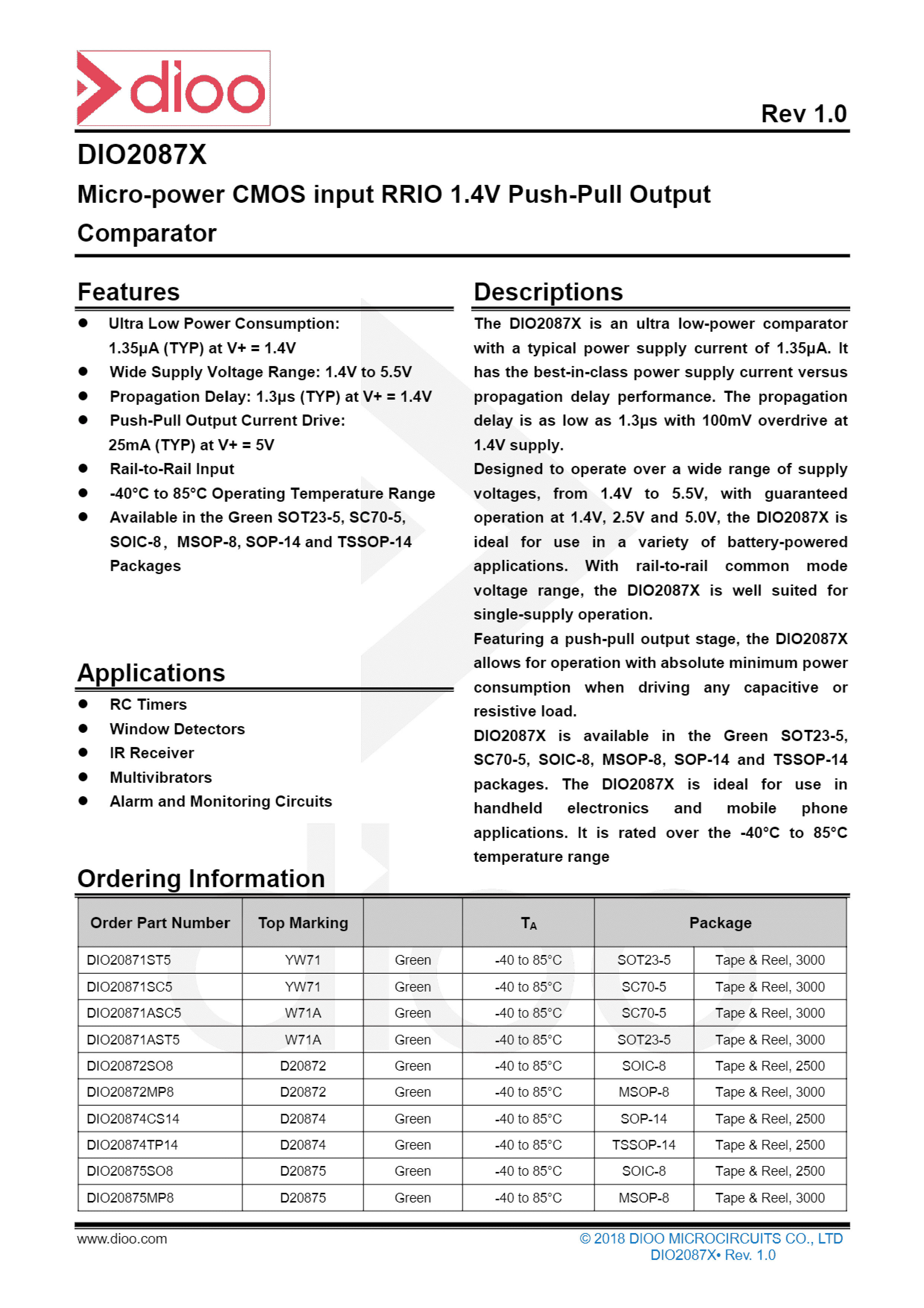 DIO20871ST5数据手册SOT-23-5封装DIOO(帝奥微)PDF规格书,中英文下载