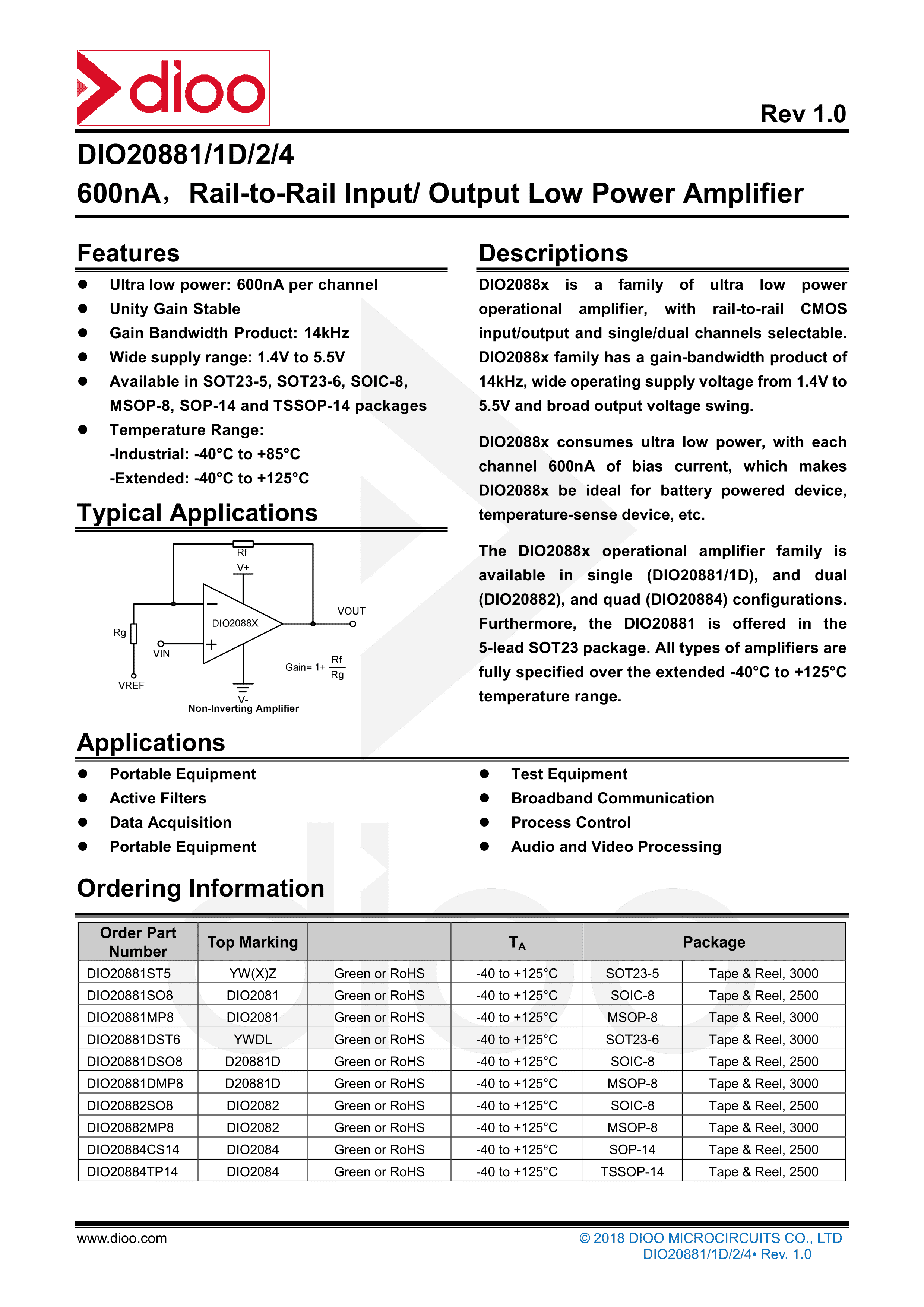 DIO20884TP14数据手册TSSOP-14封装DIOO(帝奥微)PDF规格书,中英文下载