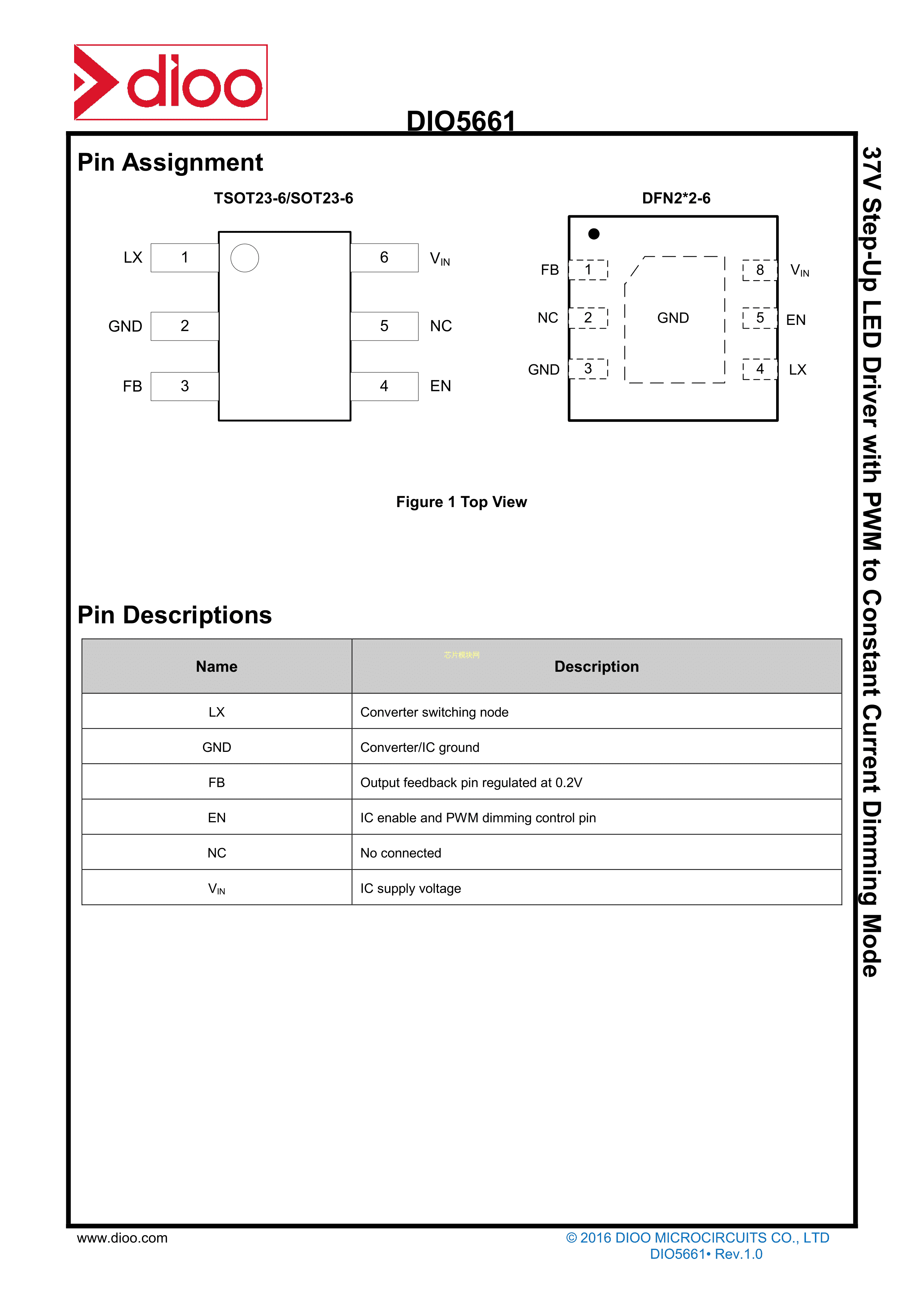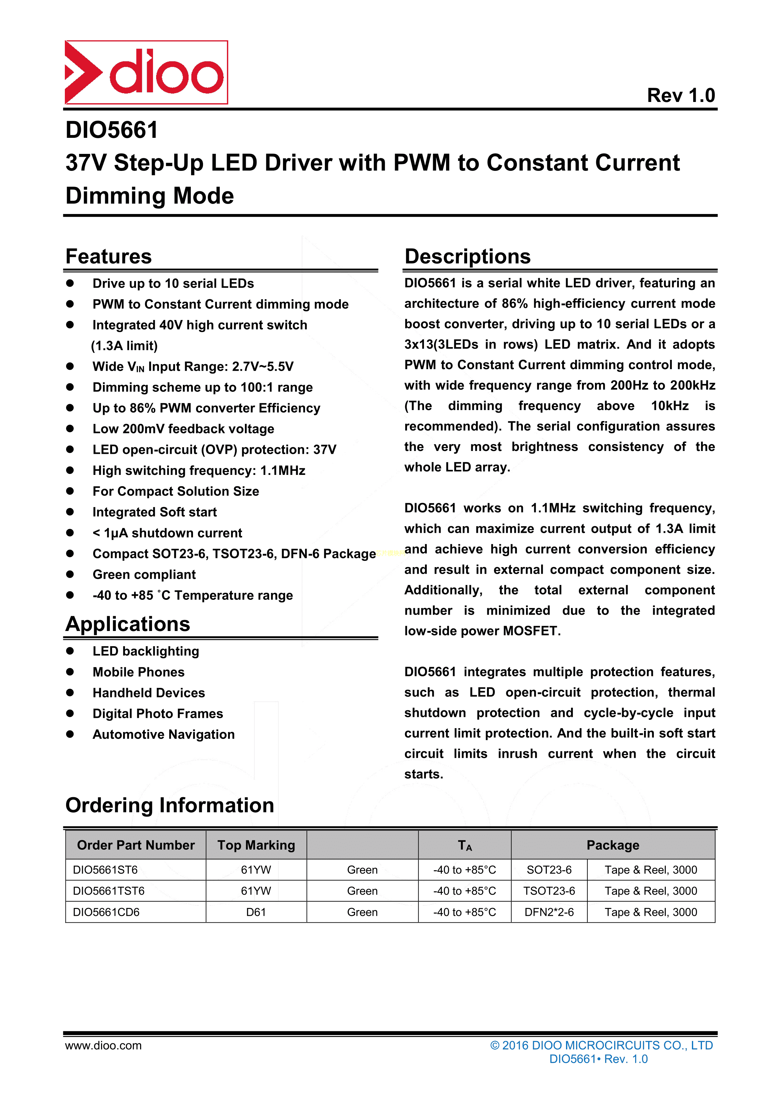 DIO5661ST6数据手册SOT-23-6封装DIOO(帝奥微)PDF规格书,中英文下载