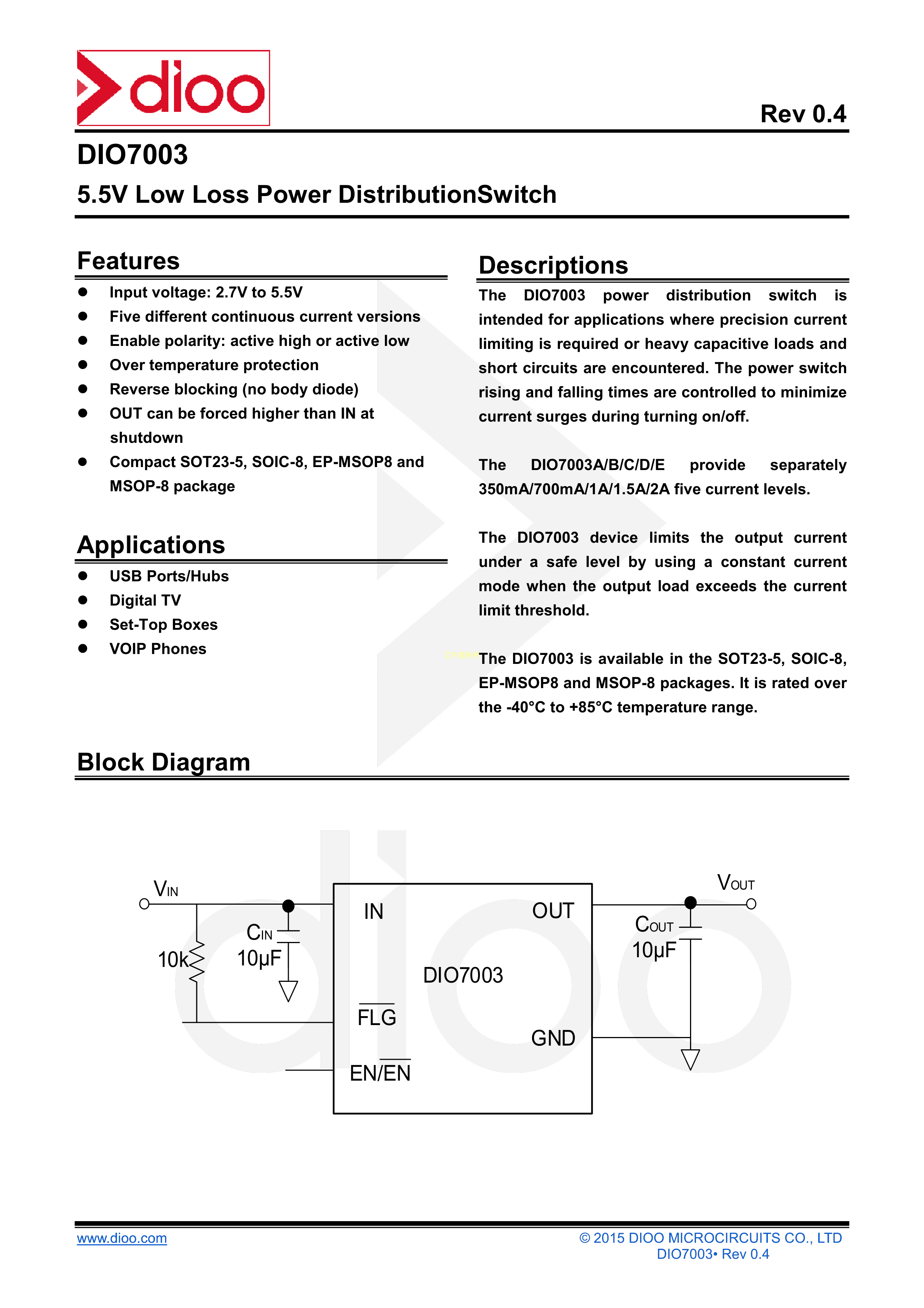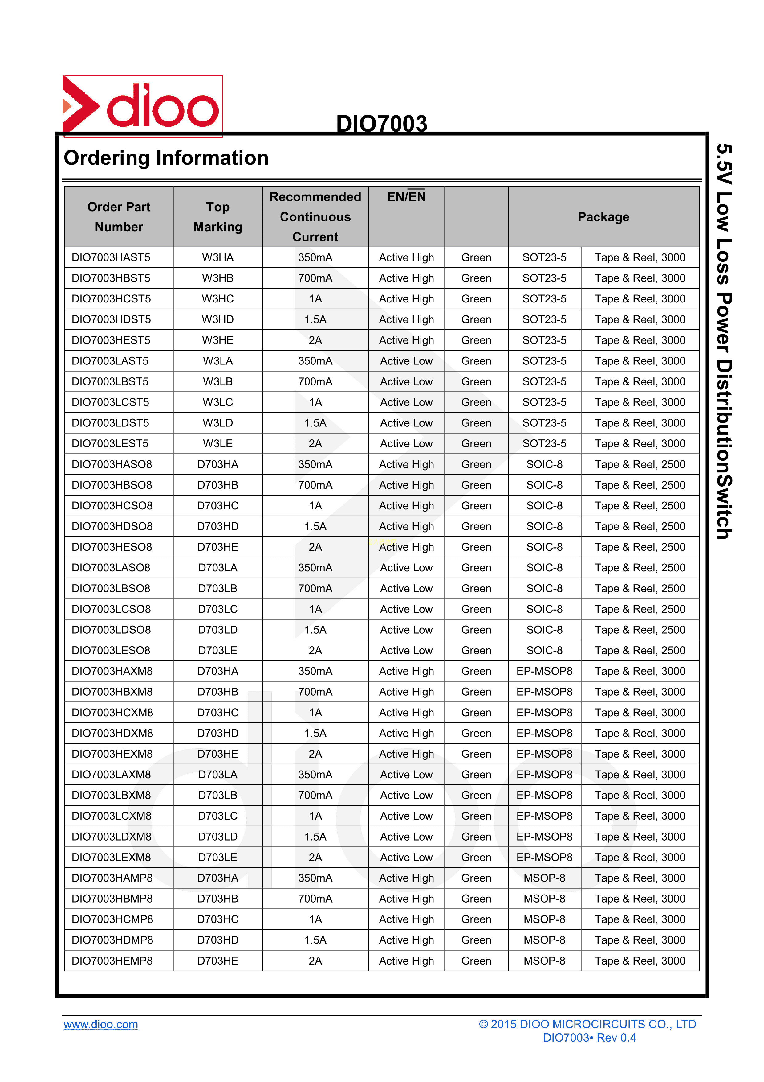 DIO7003LBST5数据手册SOT-23-5封装DIOO(帝奥微)PDF规格书,中英文下载