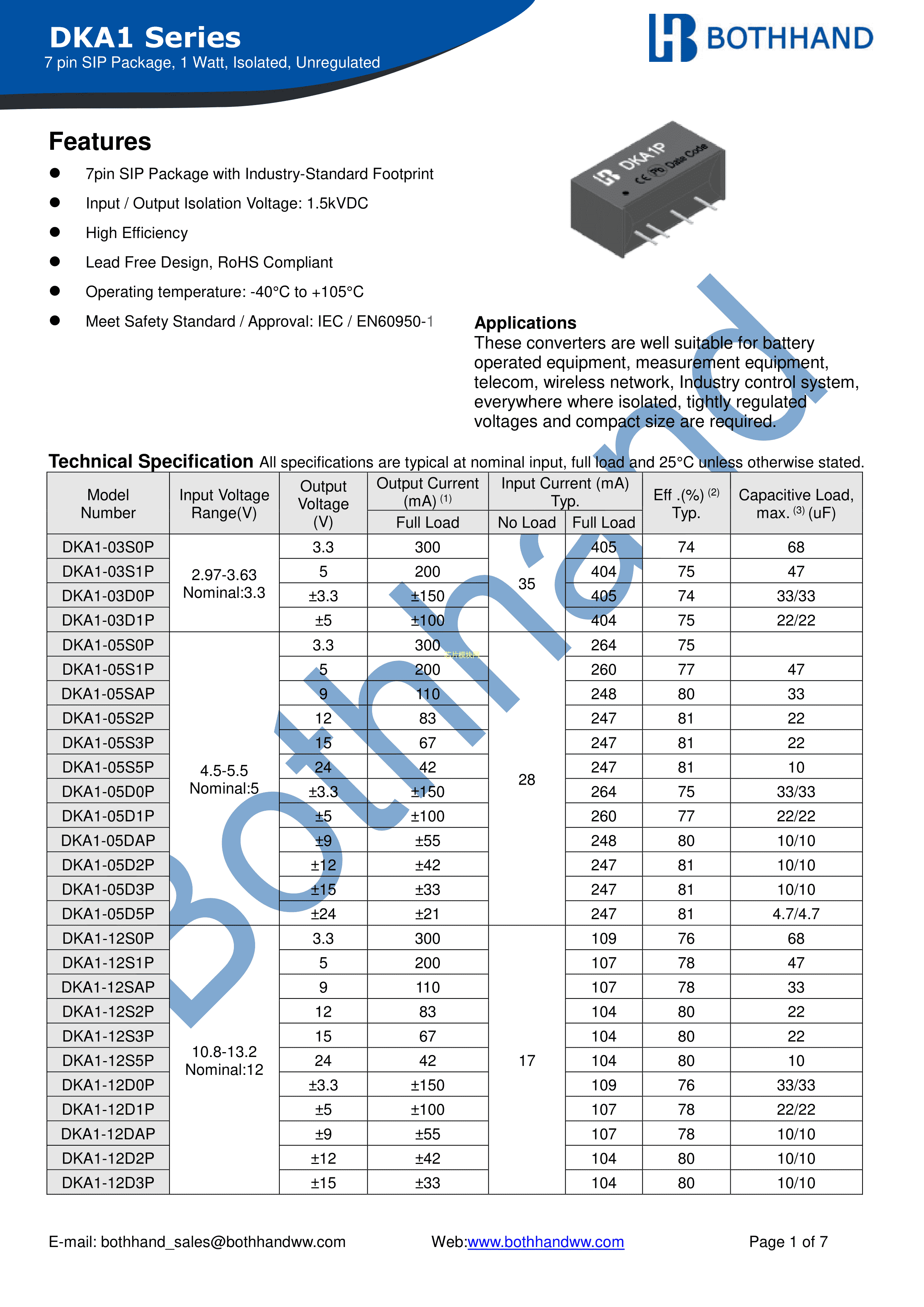 DKA1-24S5P数据手册DIP-7封装BOTHHAND(帛汉)PDF规格书,中英文下载
