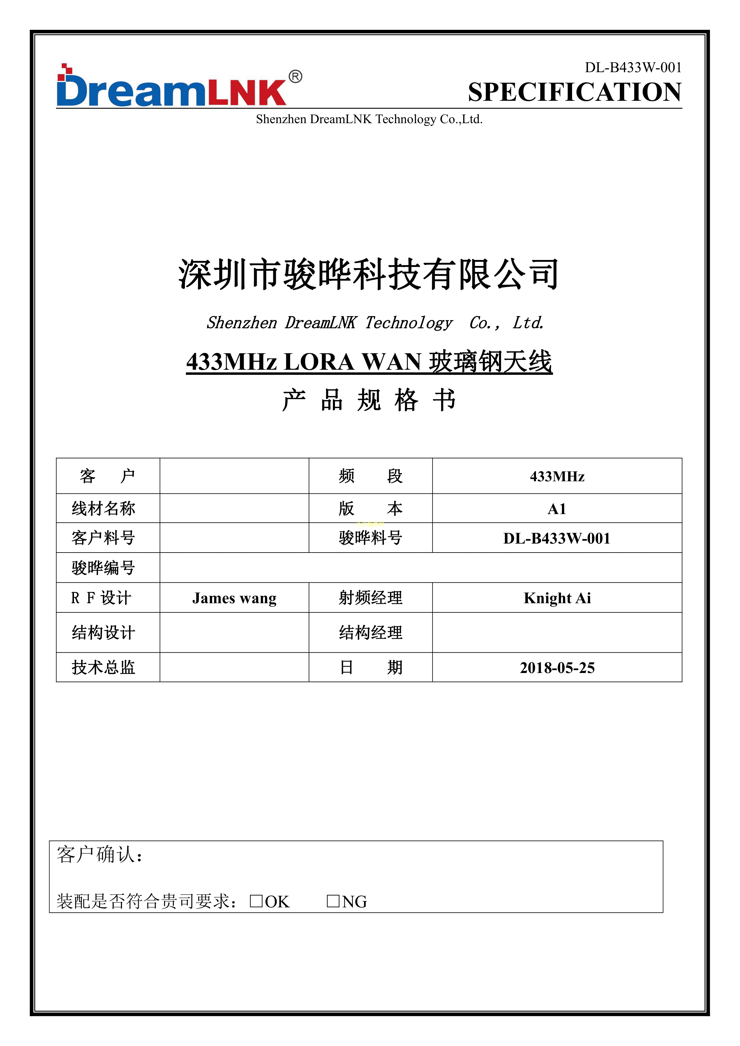 DL-B433W-001数据手册-封装DreamLNK(骏晔科技)PDF规格书,中英文下载