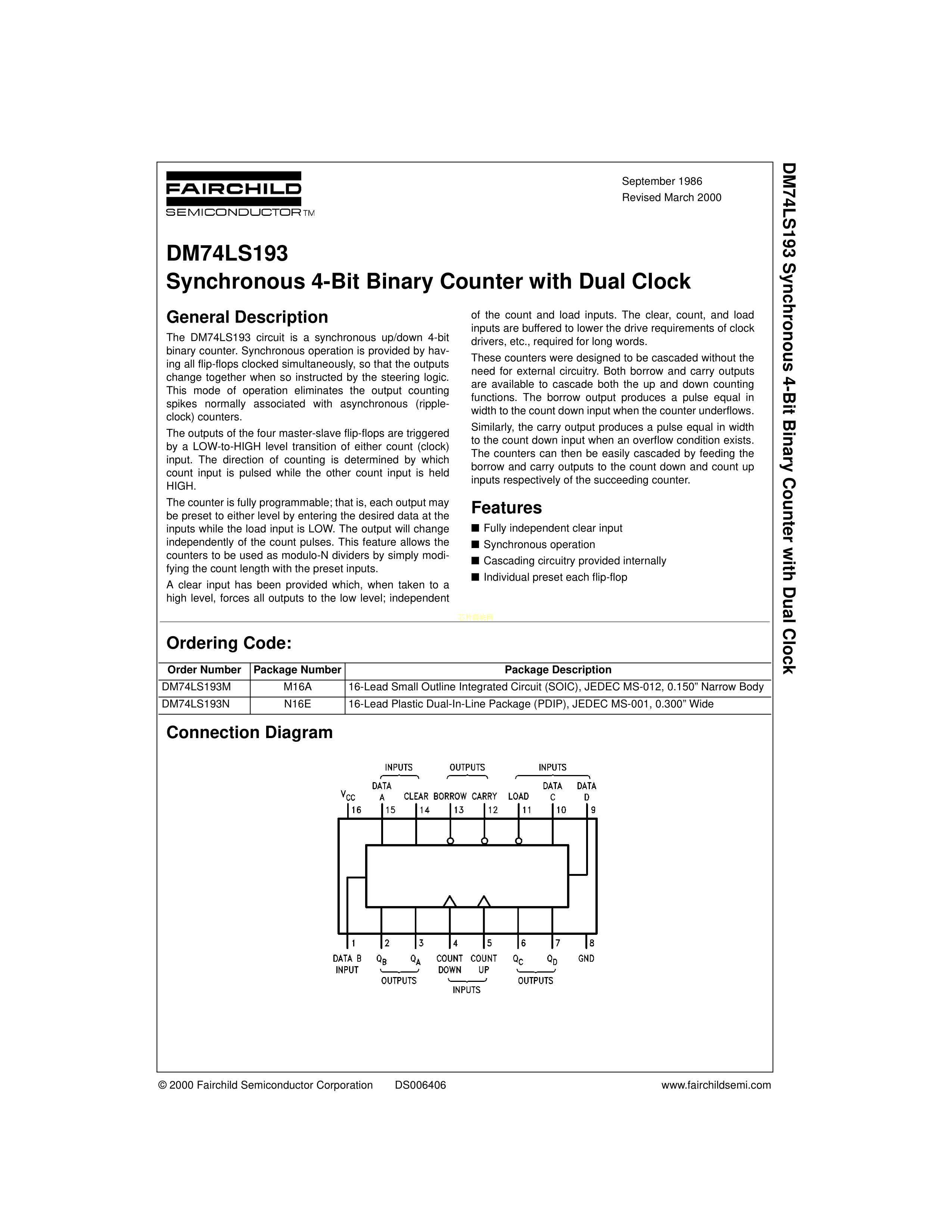DM74LS193MX数据手册SOIC16_39MM封装onsemi(安森美)PDF规格书,中英文下