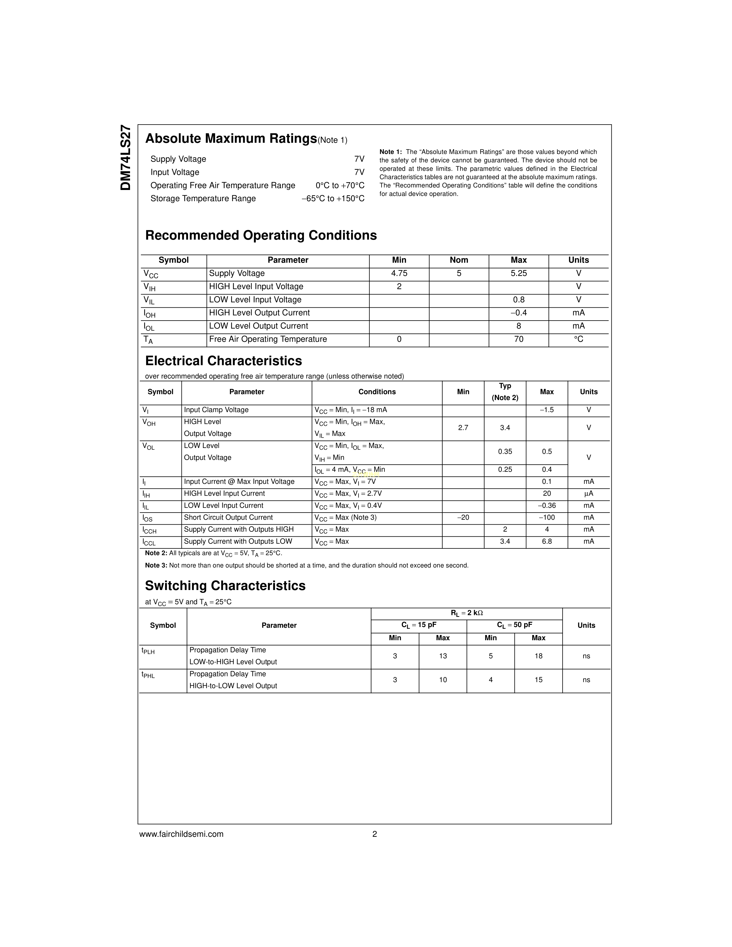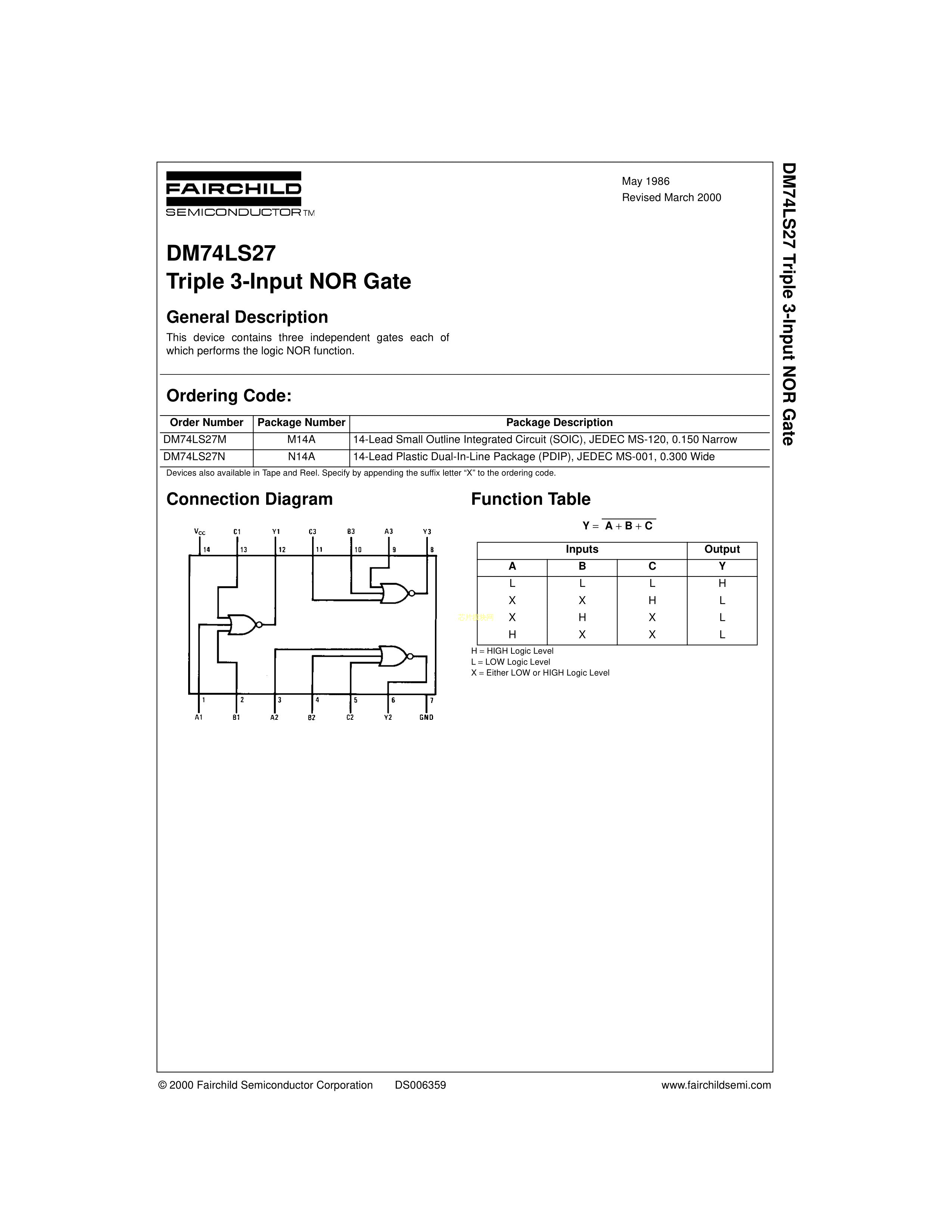 DM74LS27MX数据手册SOIC-14_150mil封装onsemi(安森美)PDF规格书,中英