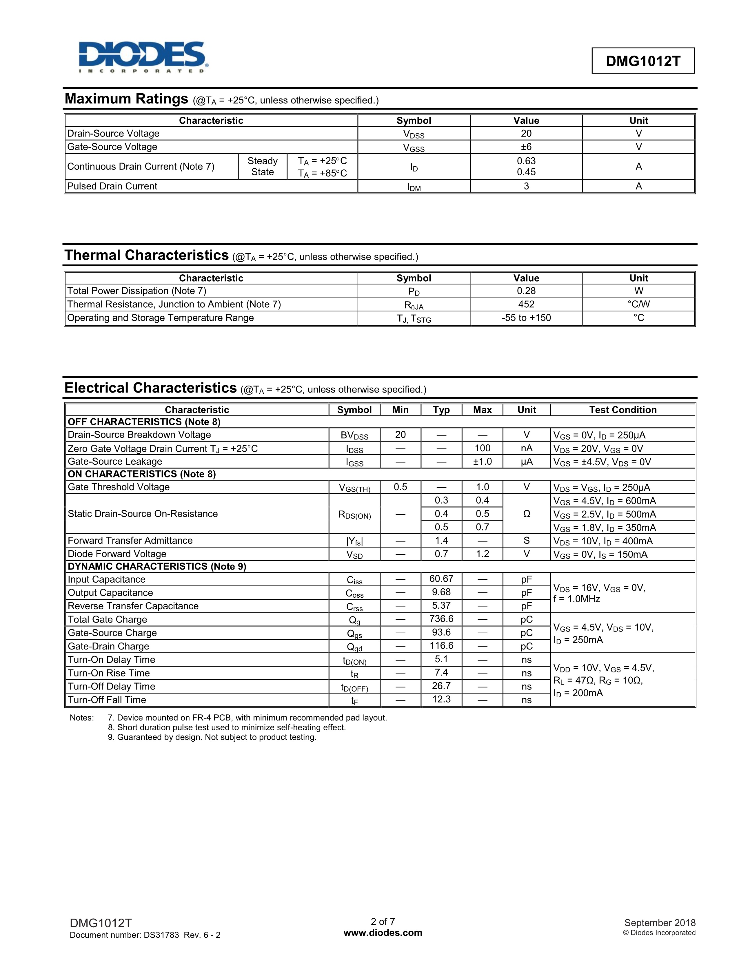 DMG1012TQ-7数据手册SOT-523封装DIODES(美台)PDF规格书,中英文下载