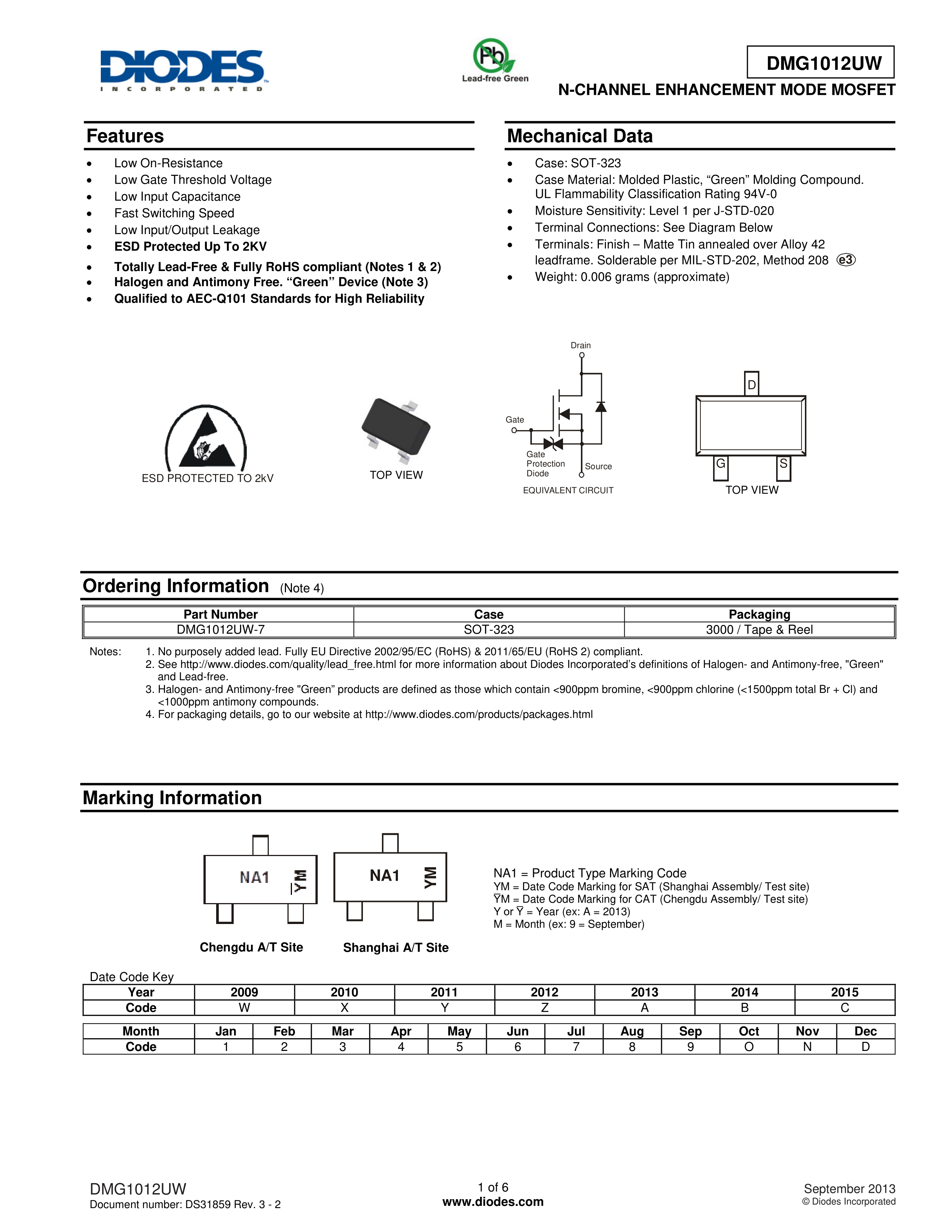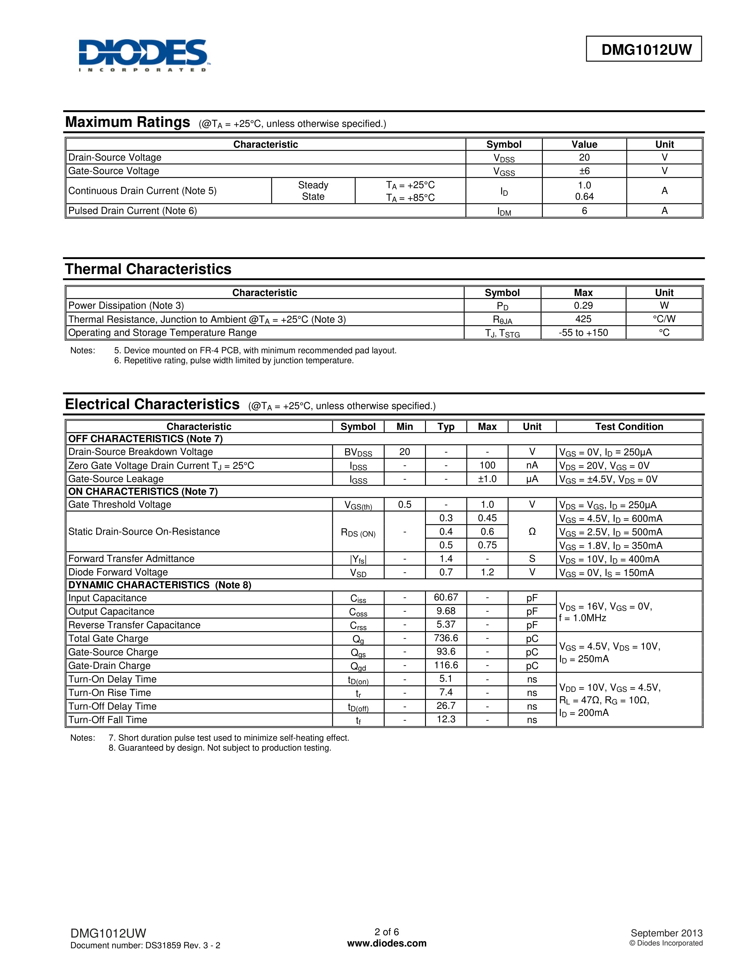 DMG1012UW-7数据手册SOT-323(SC-70)封装DIODES(美台)PDF规格书,中英