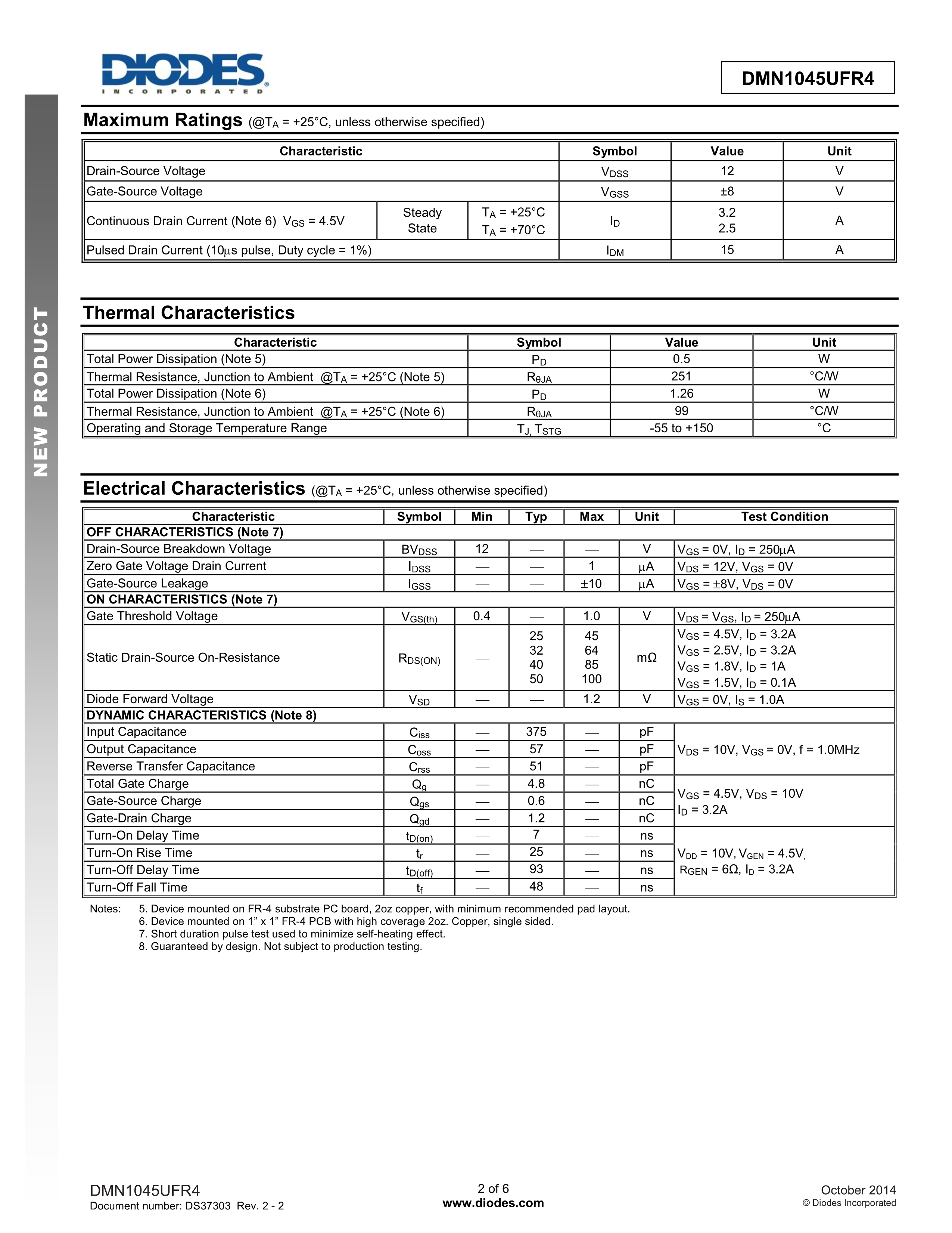 DMN1045UFR4-7数据手册X2-DFN1010-3封装DIODES(美台)PDF规格书,中英