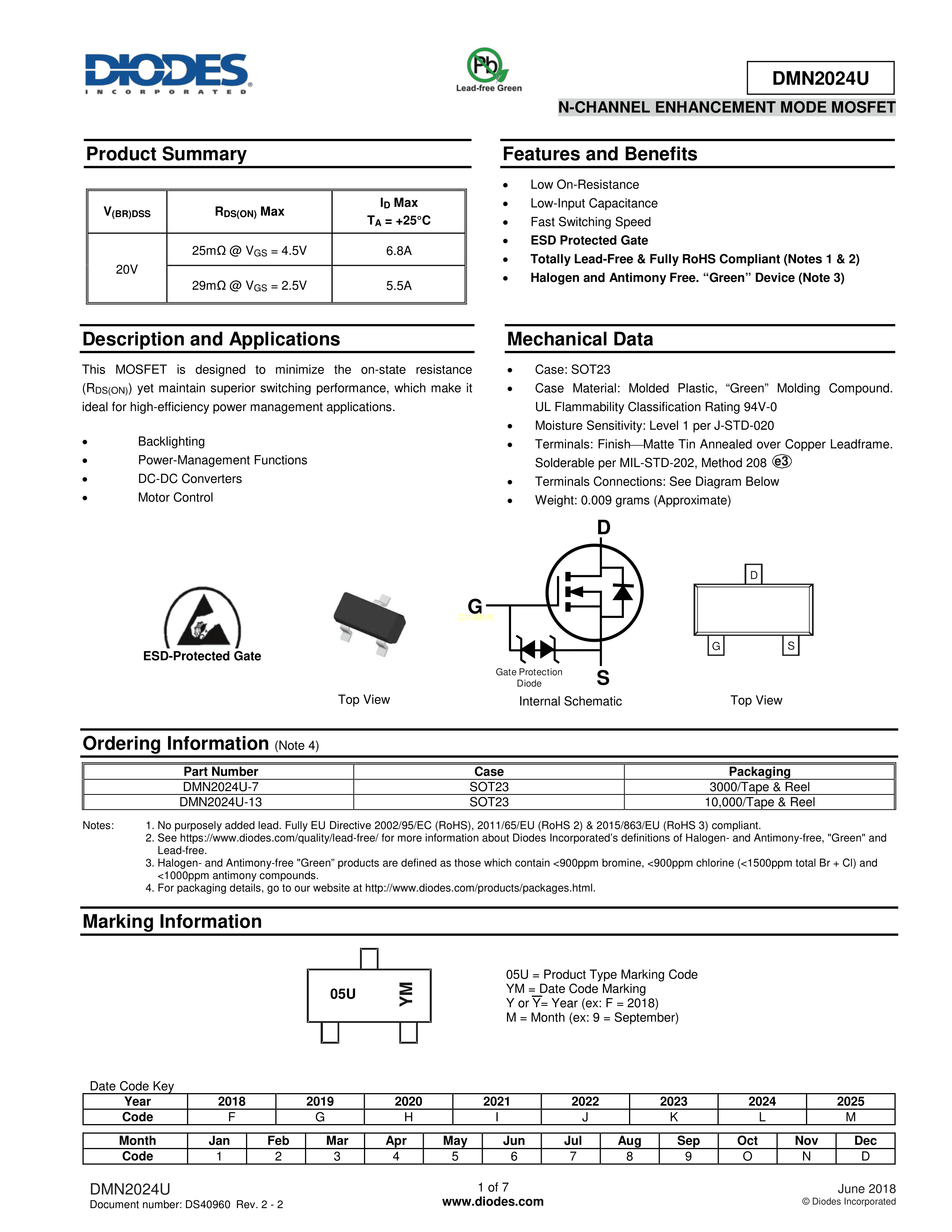 DMN2024U-7数据手册SOT-23-3封装DIODES(美台)PDF规格书,中英文下载