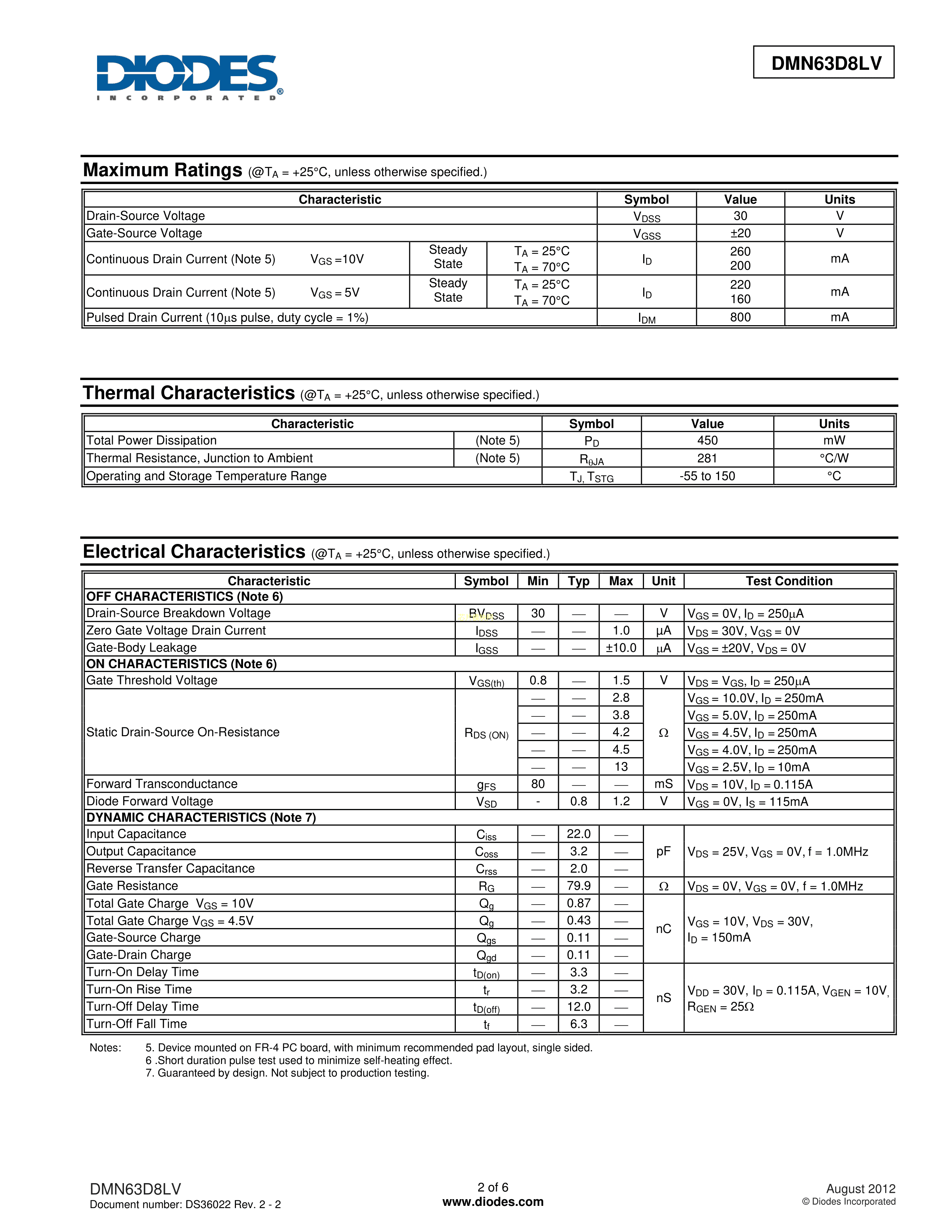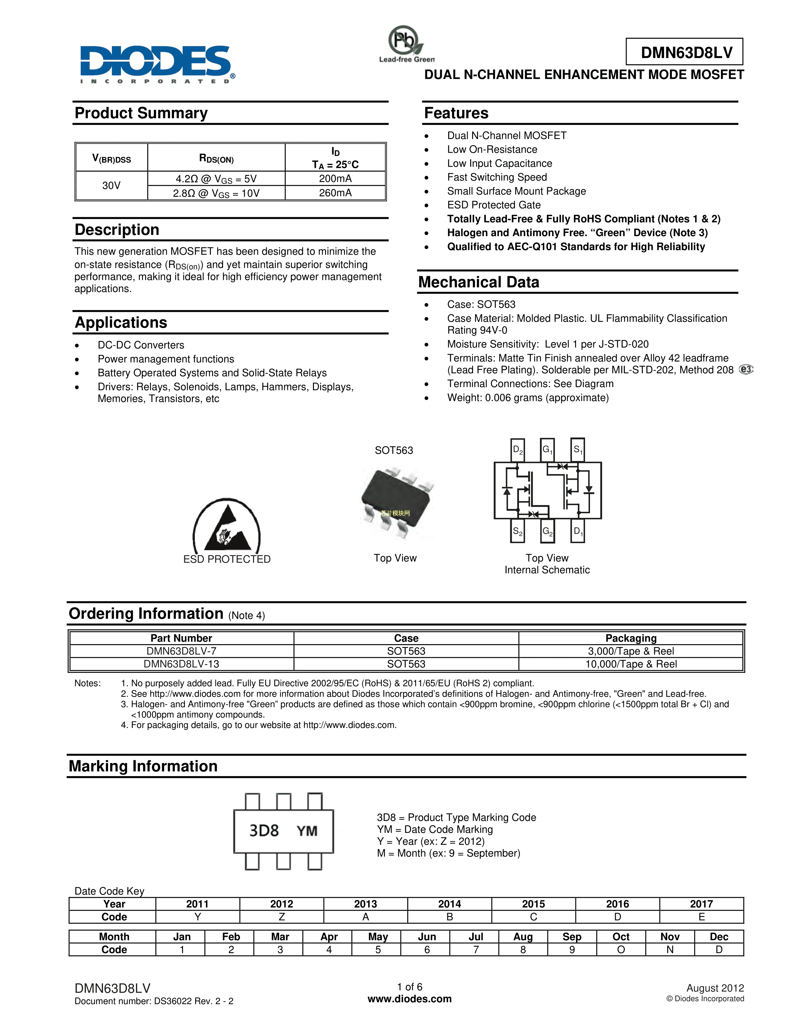 DMN63D8LV-7数据手册SOT-563封装DIODES(美台)PDF规格书,中英文下载