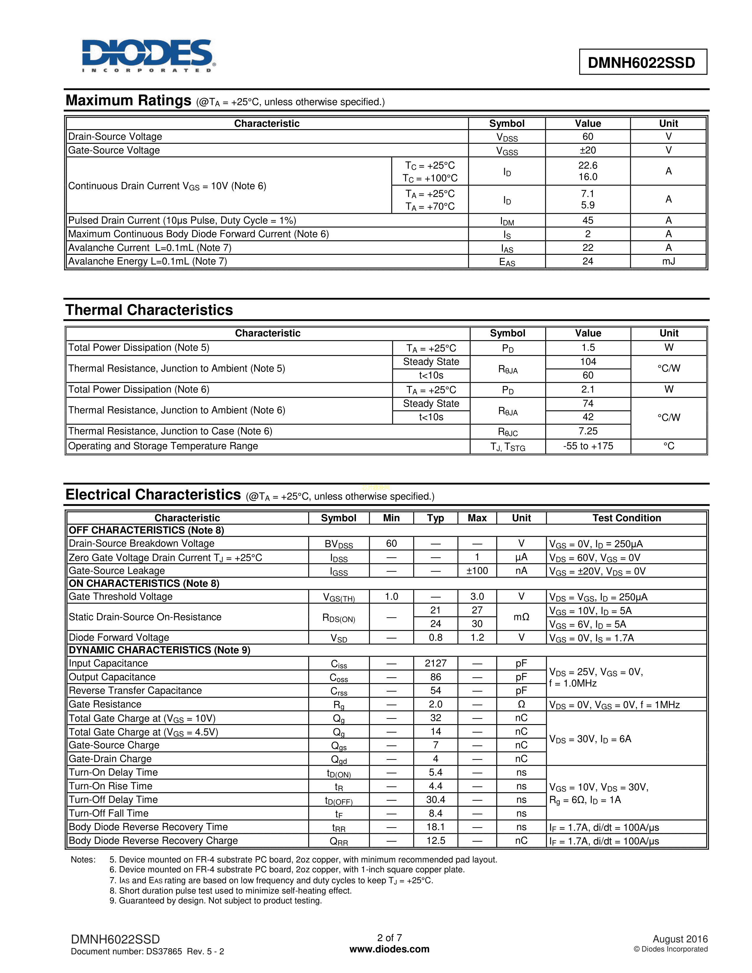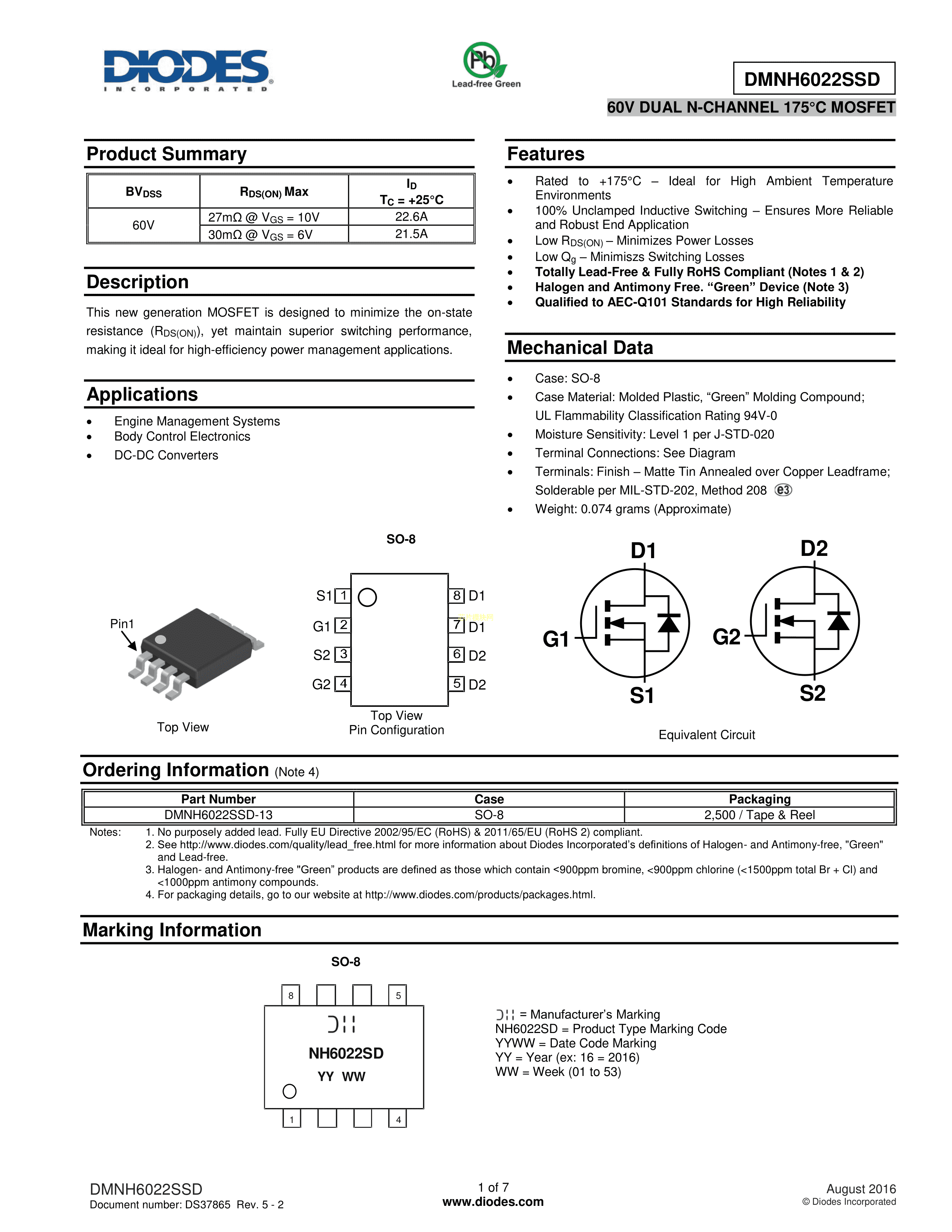 DMNH6022SSD-13数据手册SO-8封装DIODES(美台)PDF规格书,中英文下载