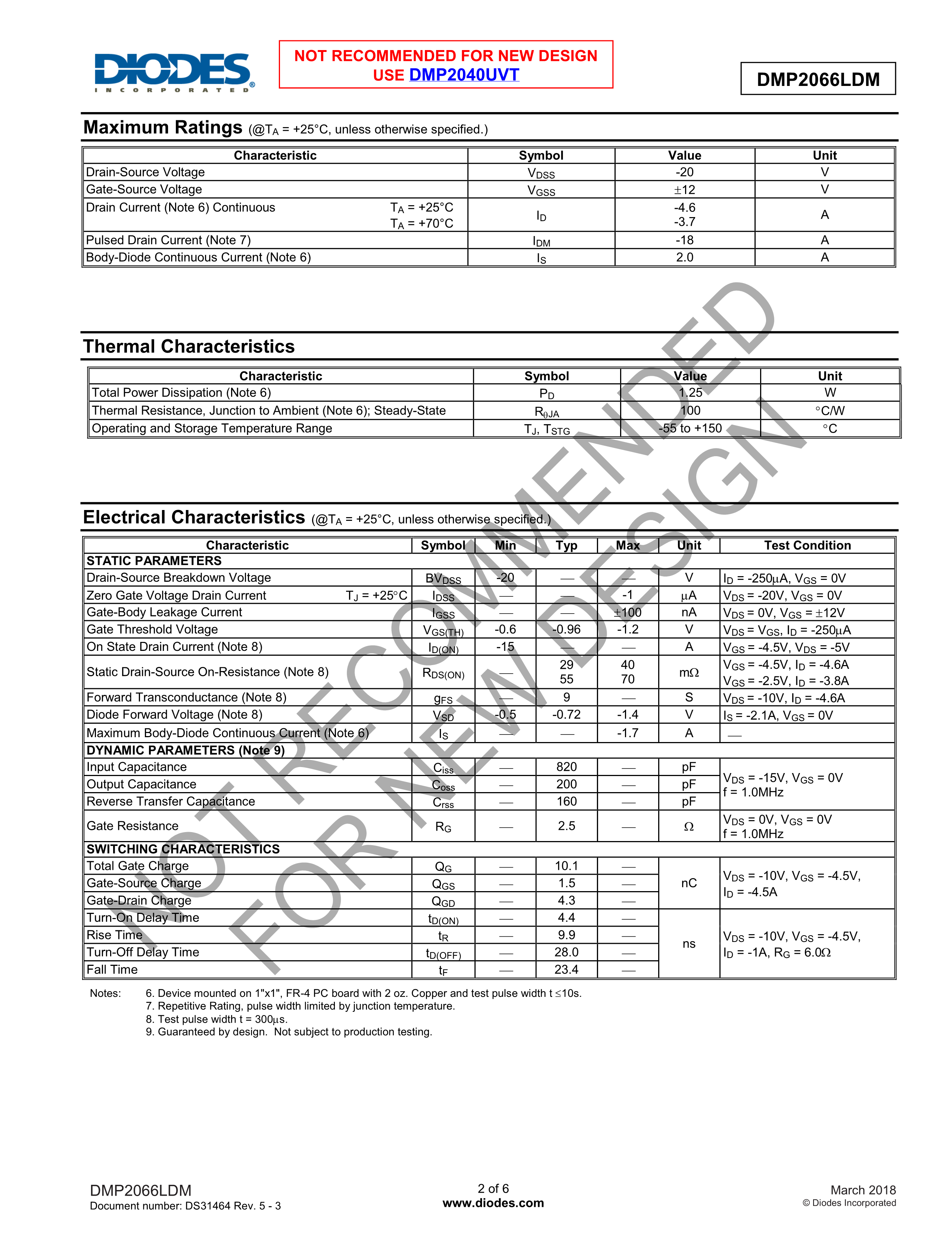 DMP2066LDM-7数据手册SOT-26封装DIODES(美台)PDF规格书,中英文下载