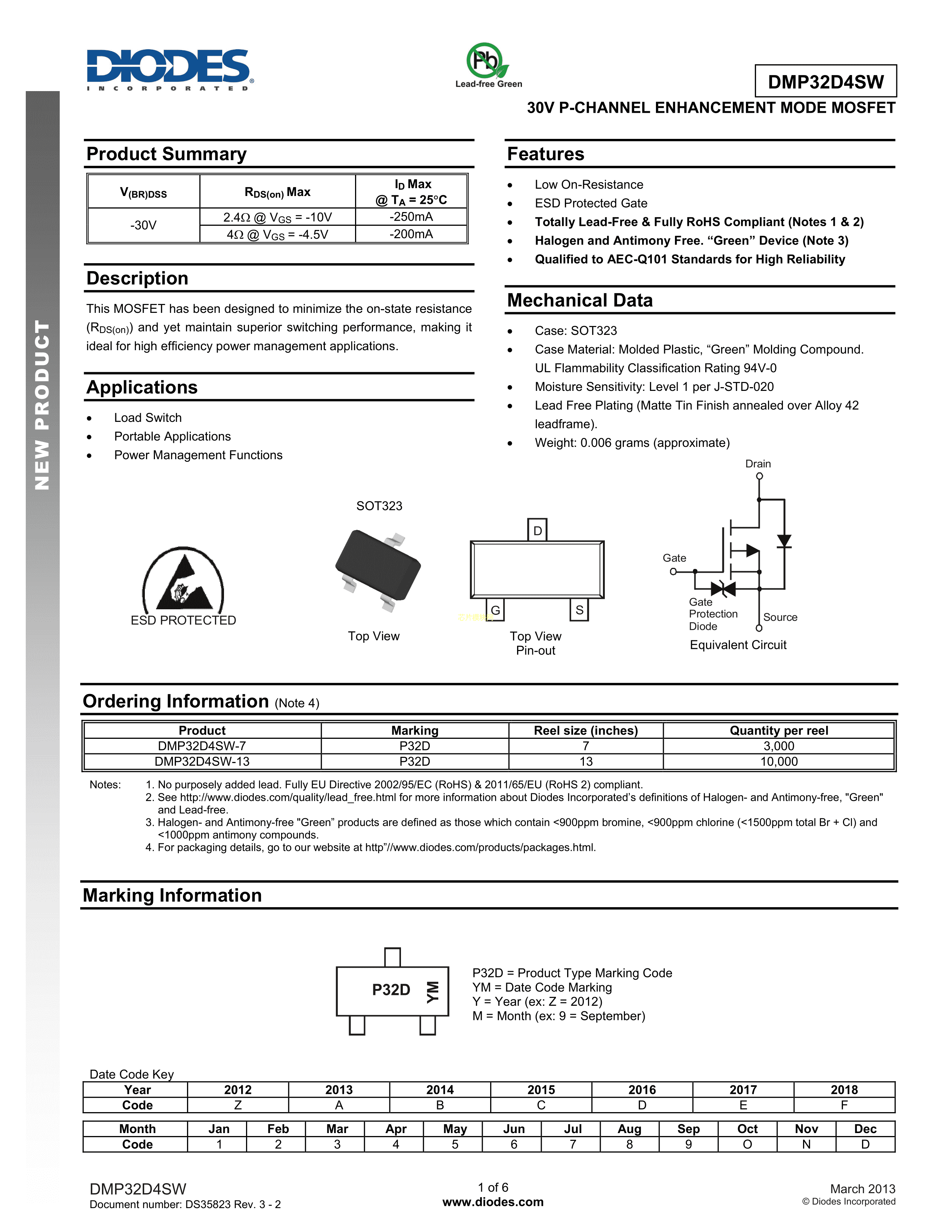 DMP32D4SW-7数据手册SOT-323封装DIODES(美台)PDF规格书,中英文下载