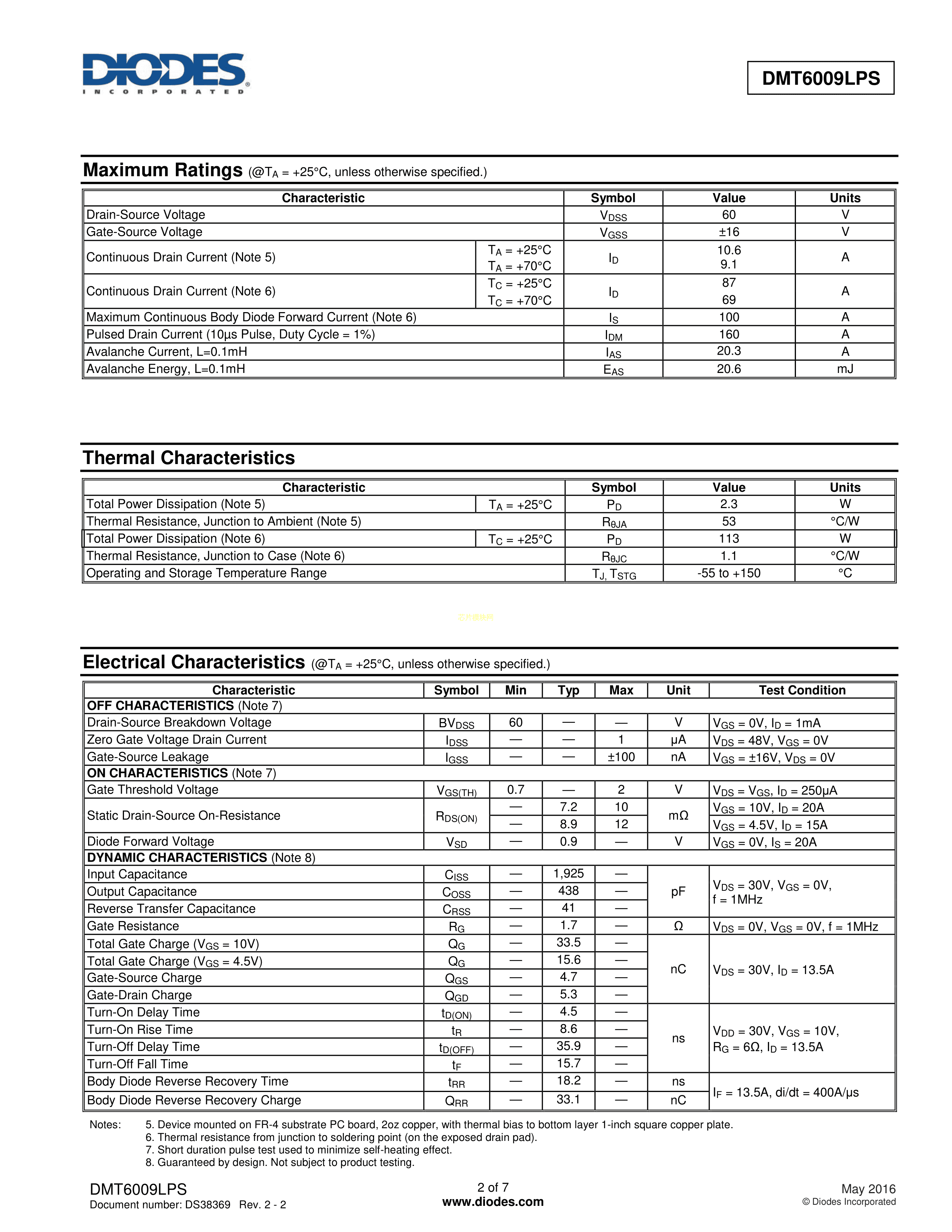DMT6009LPS-13数据手册PowerDI5060-8封装DIODES(美台)PDF规格书,中