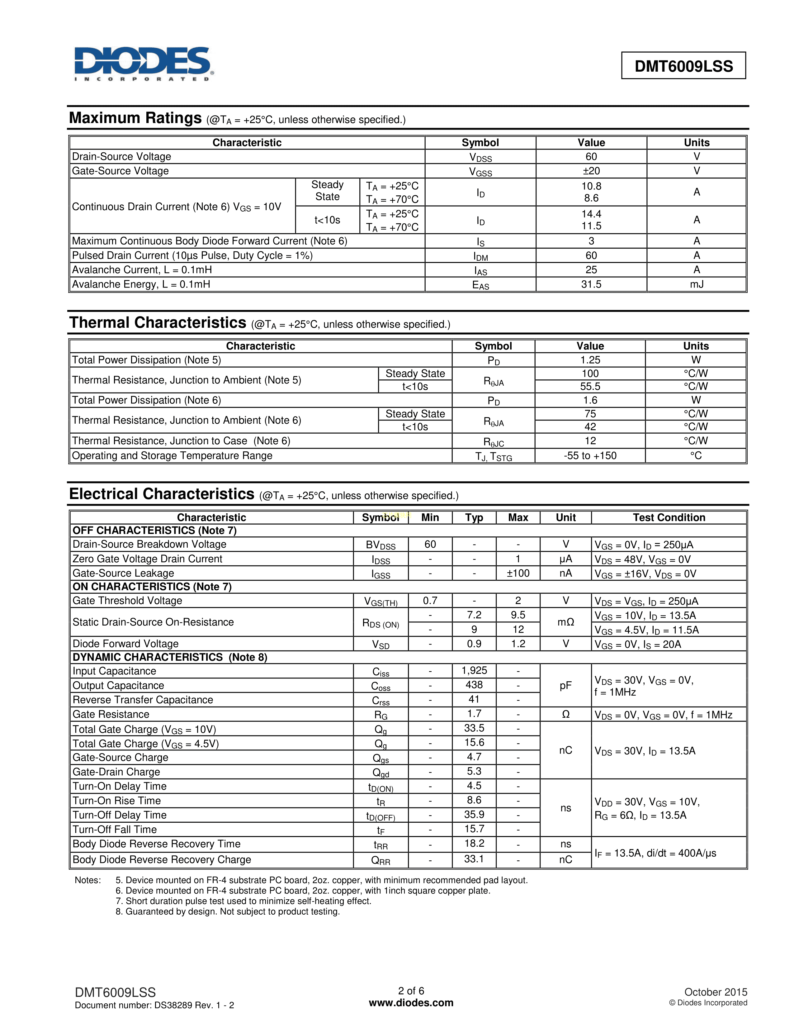 DMT6009LSS-13数据手册SO-8封装DIODES(美台)PDF规格书,中英文下载