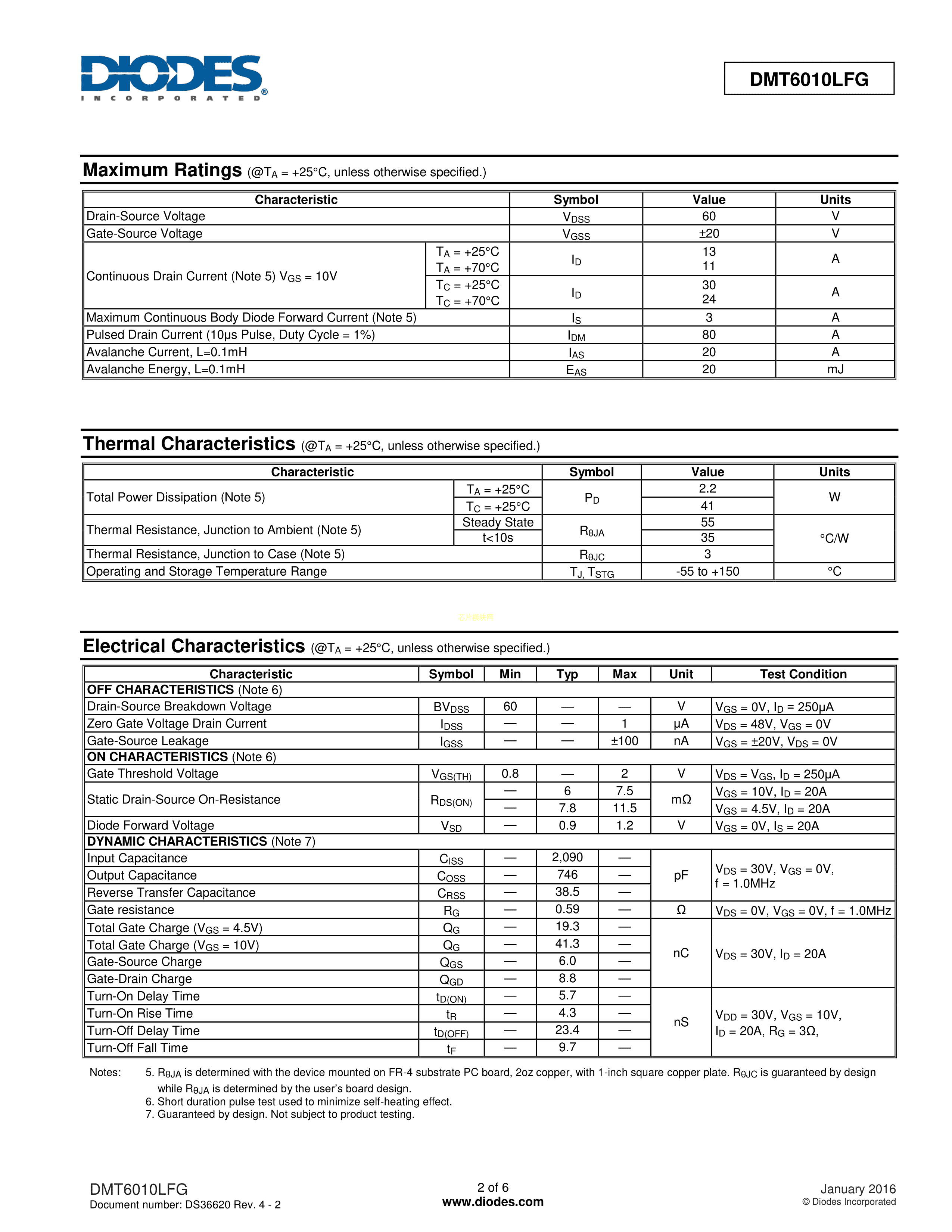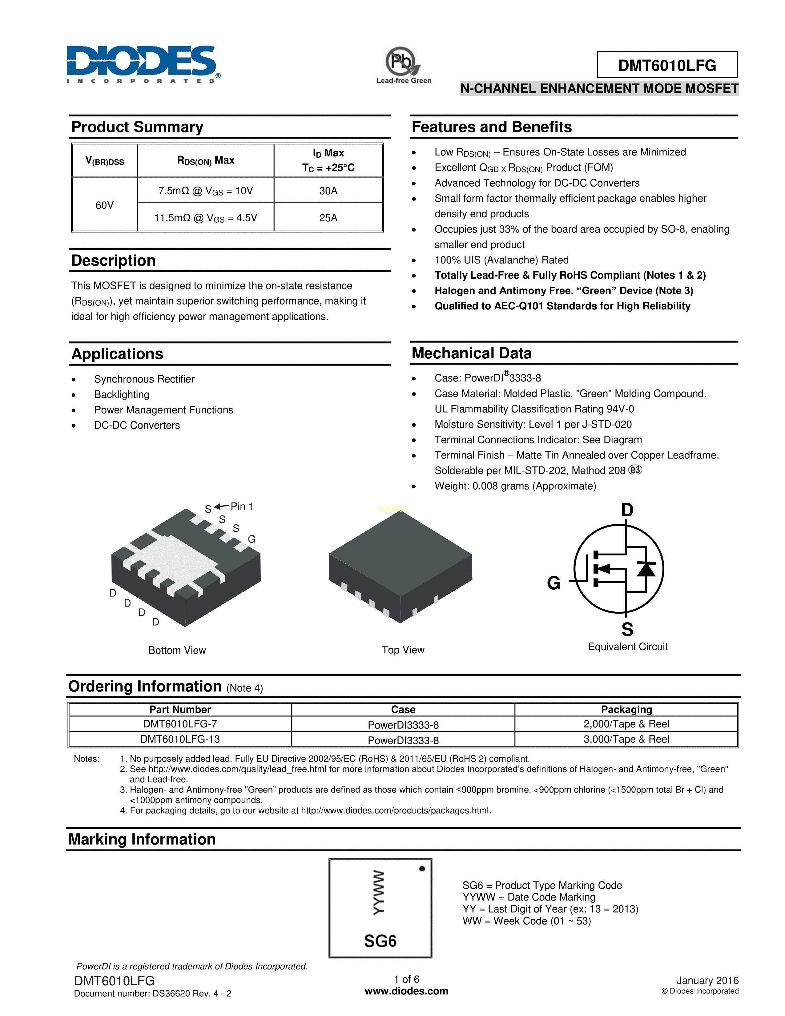 DMT6010LFG-7数据手册PowerDI3333-8封装DIODES(美台)PDF规格书,中英