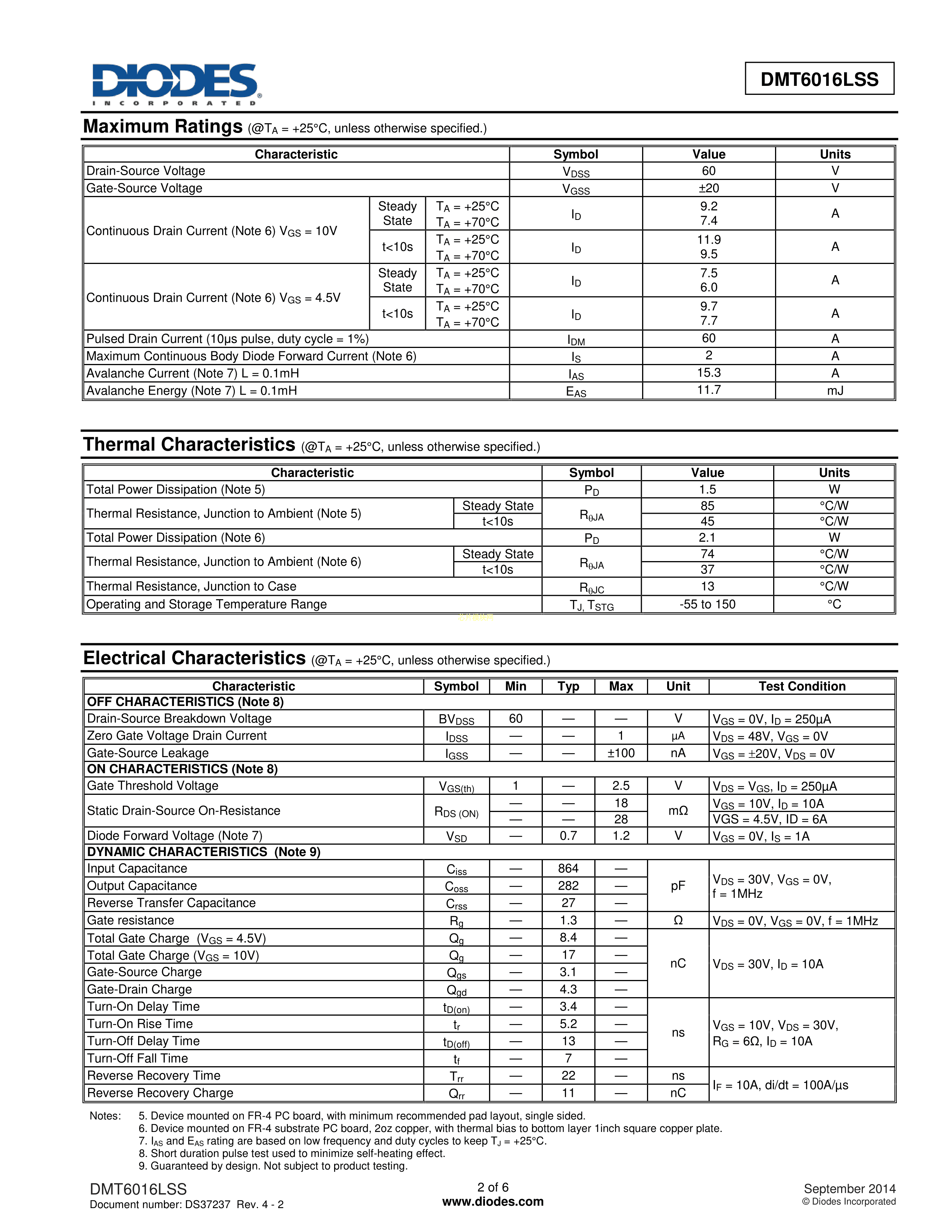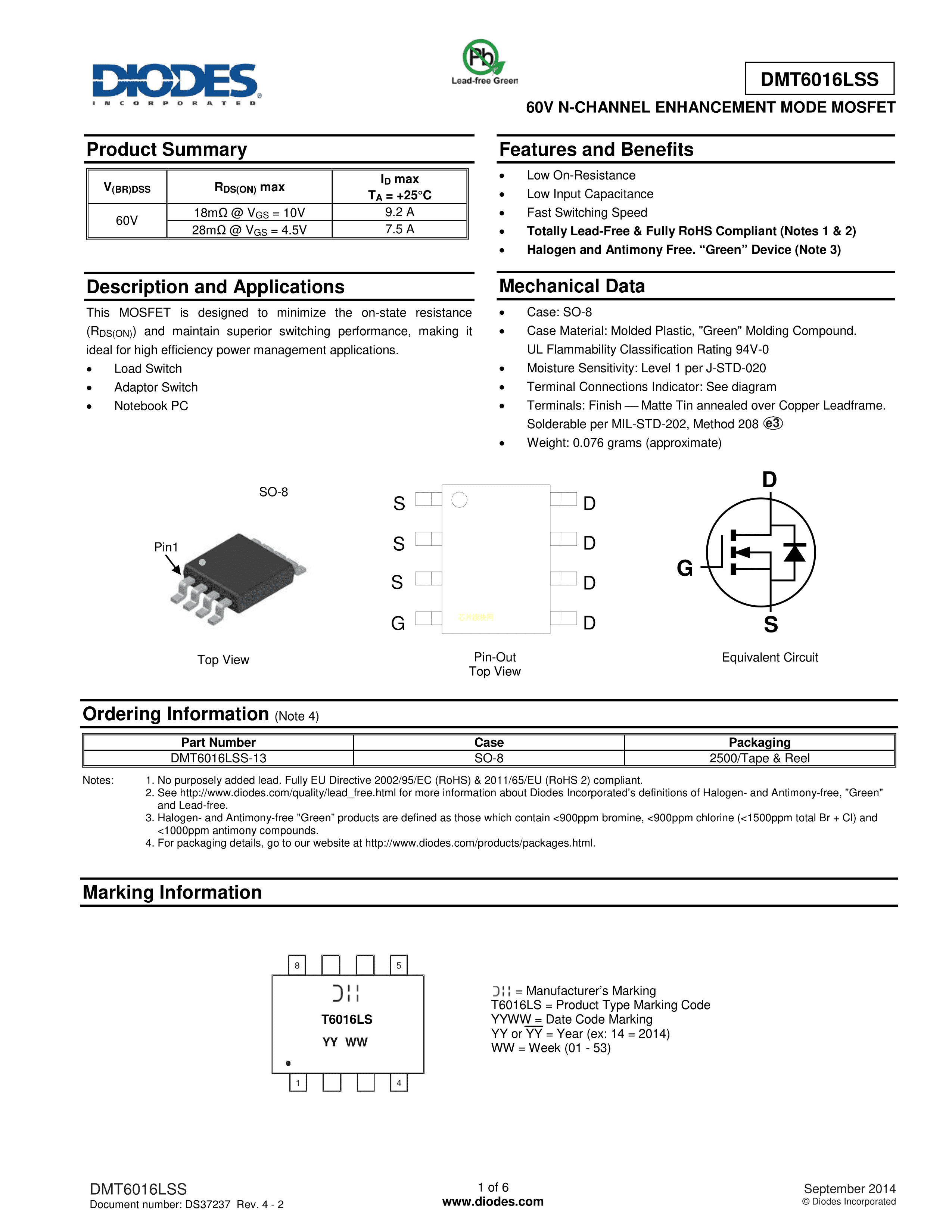 DMT6016LSS-13数据手册SOIC-8_150mil封装DIODES(美台)PDF规格书,中