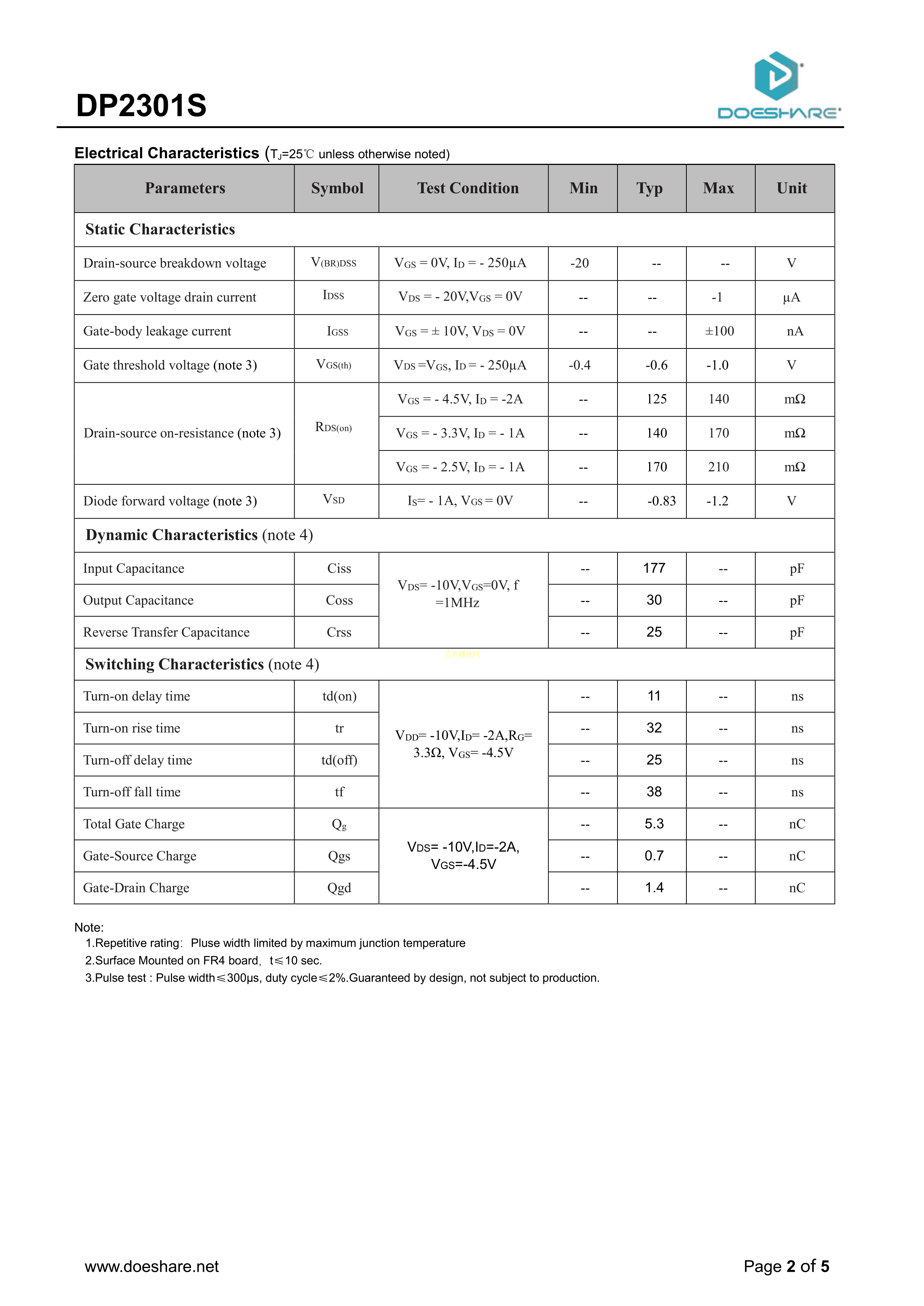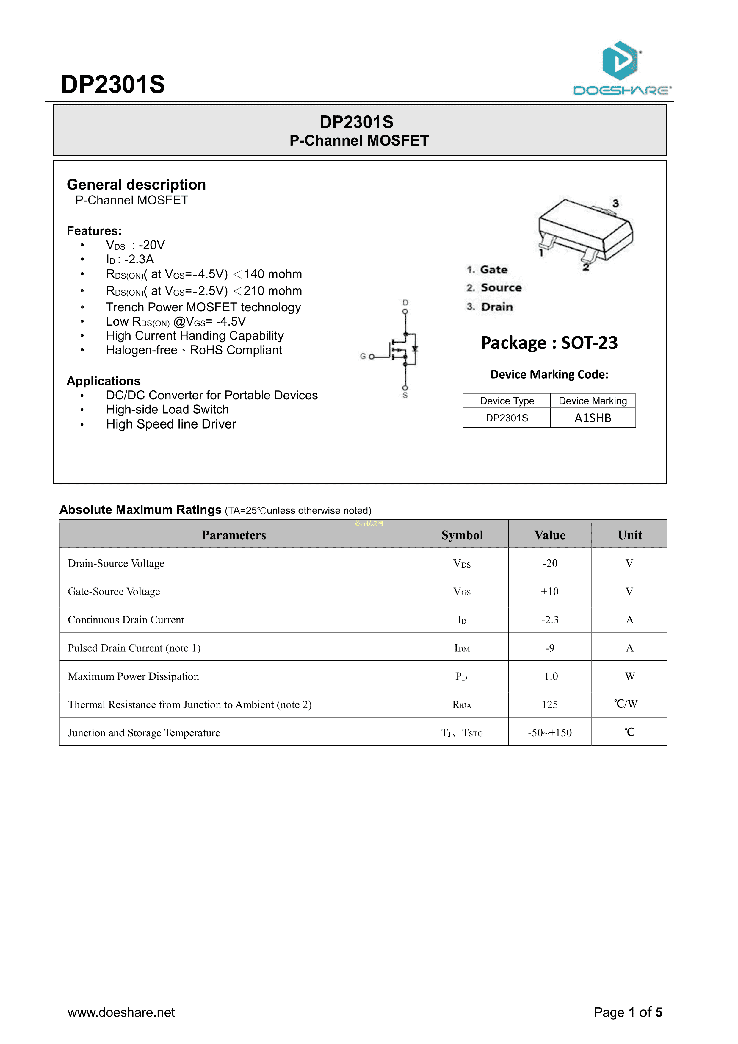 DP2301S数据手册SOT-23封装Doeshare(德芯)PDF规格书,中英文下载
