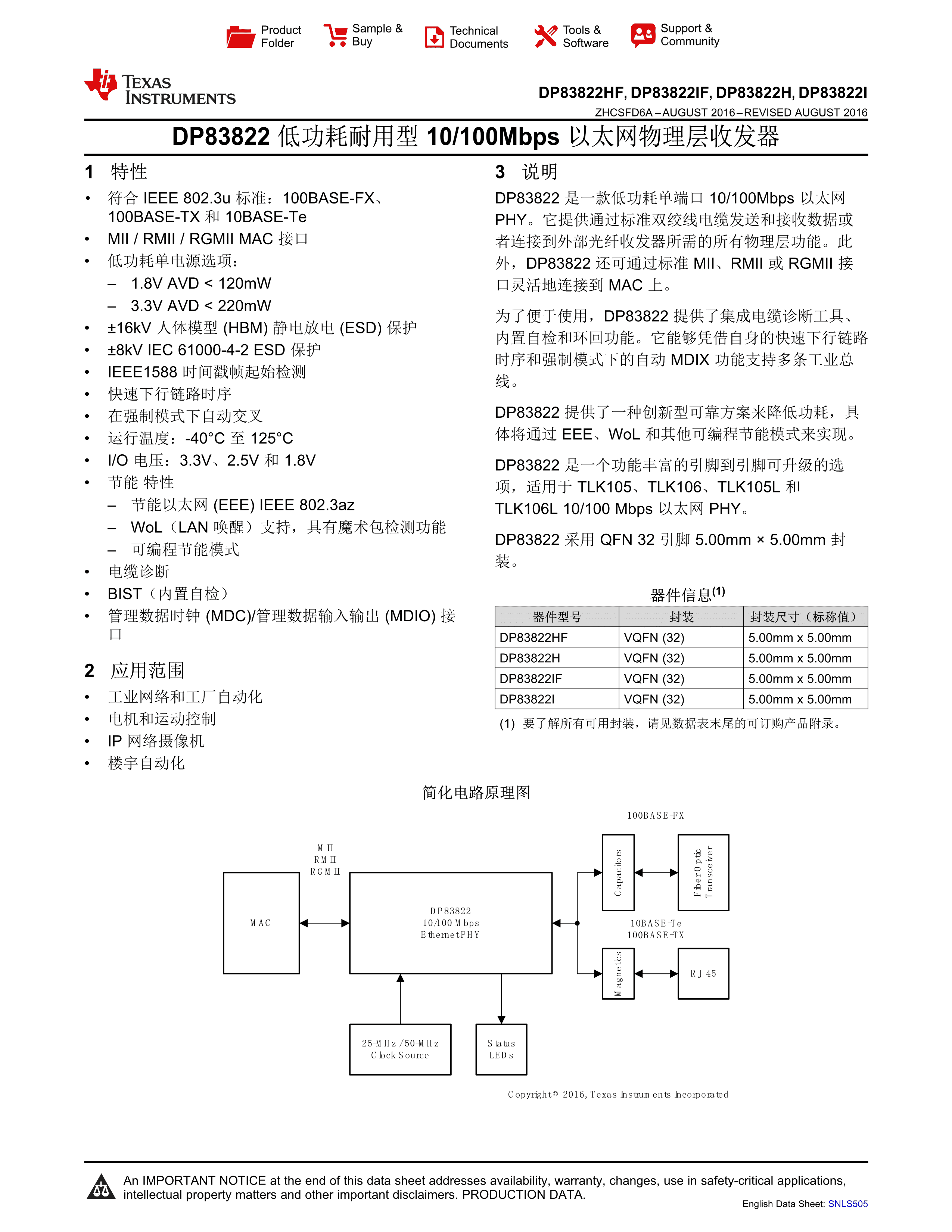 DP83822IRHBT数据手册HVQFN-32(5x5)封装TI(德州仪器)PDF规格书,中英文下