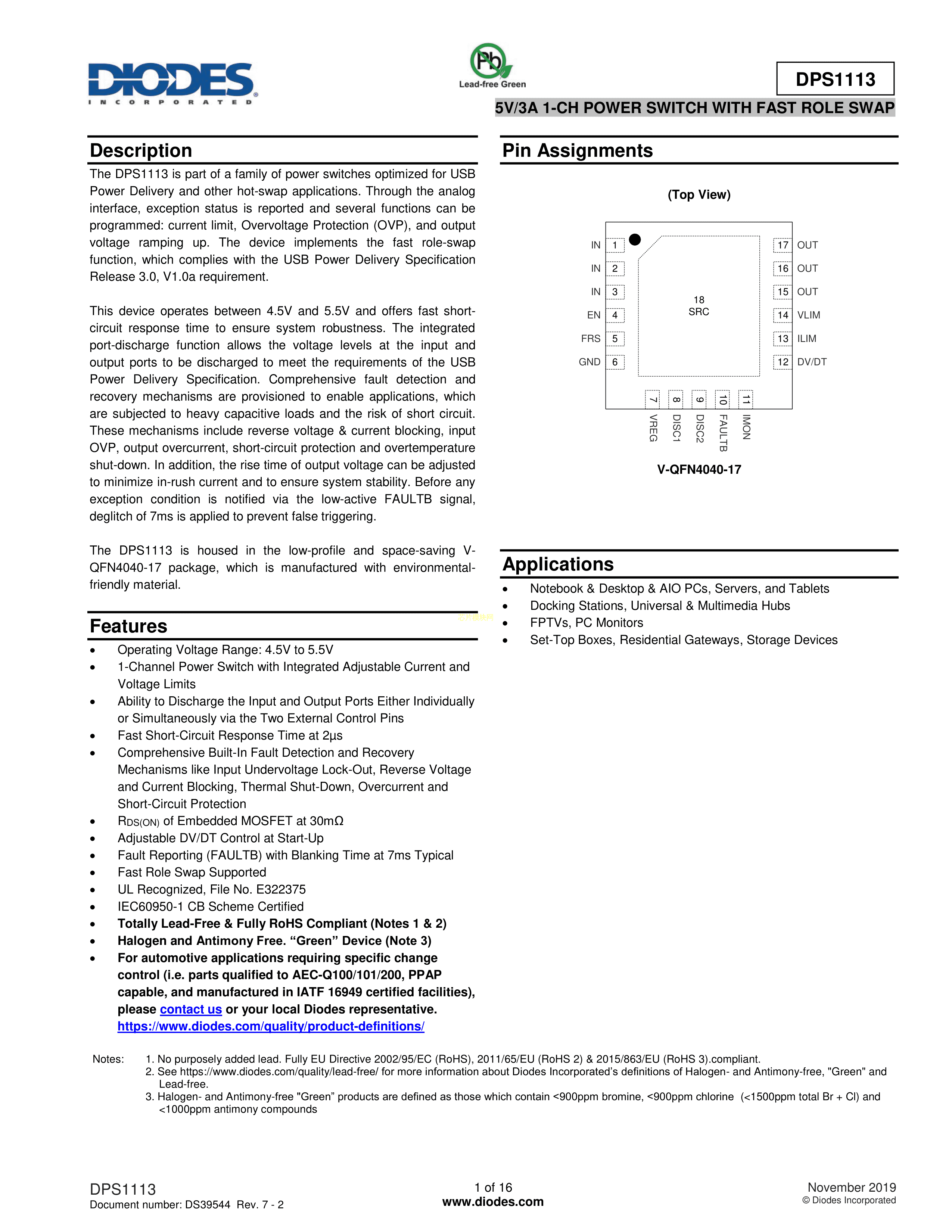 DPS1113FIA-13数据手册V-QFN4040-17封装DIODES(美台)PDF规格书,中英文下载