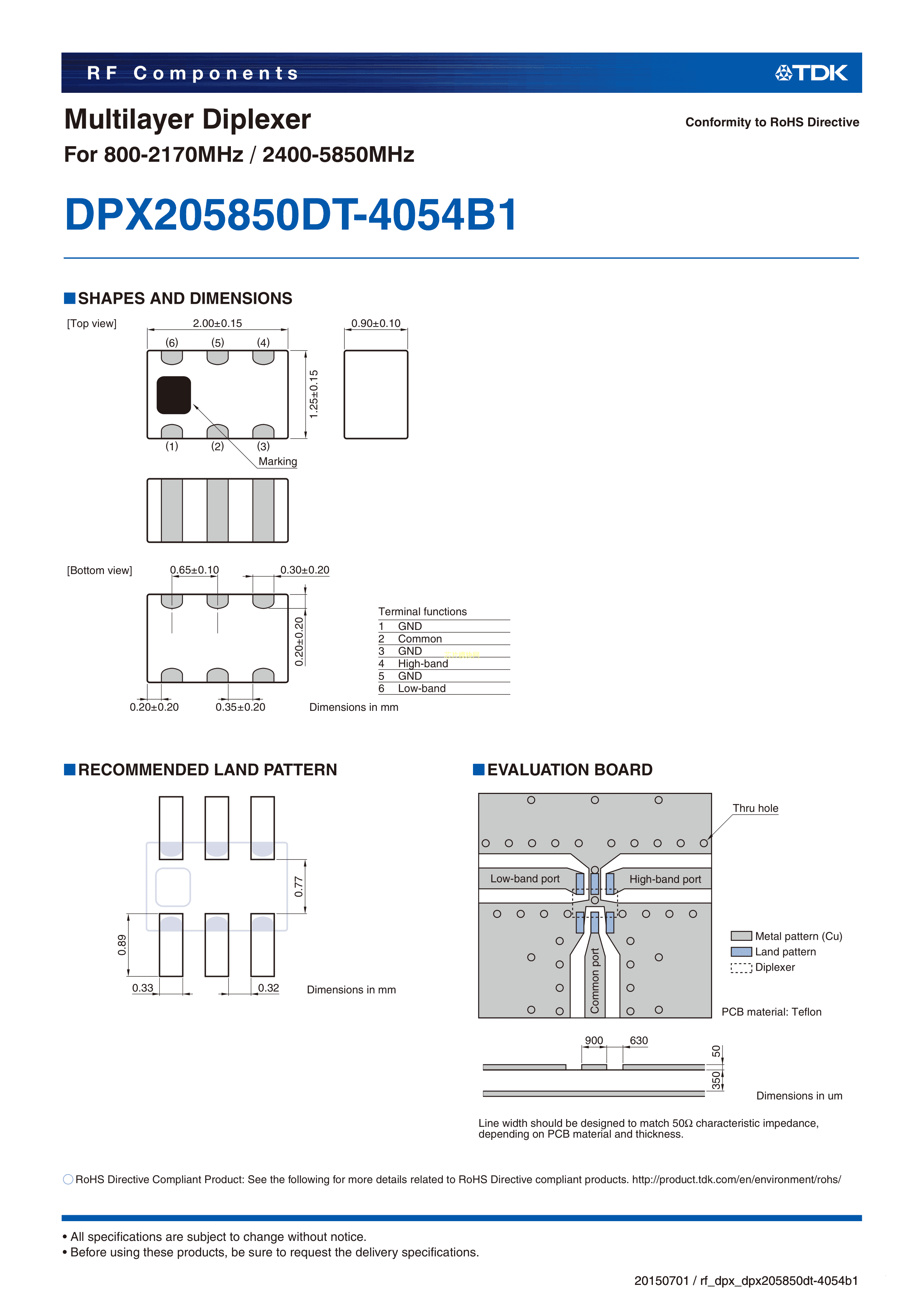 DPX205850DT-4054B1数据手册SMD封装TDKPDF规格书,中英文下载