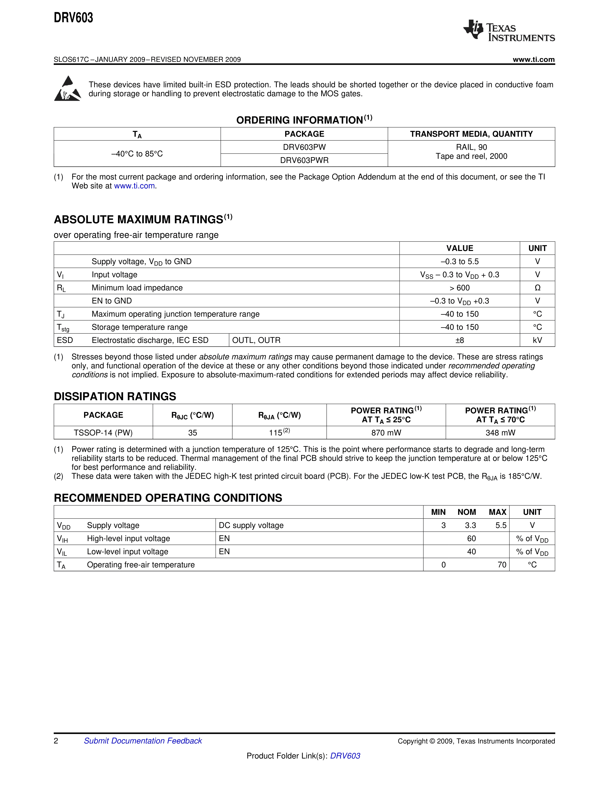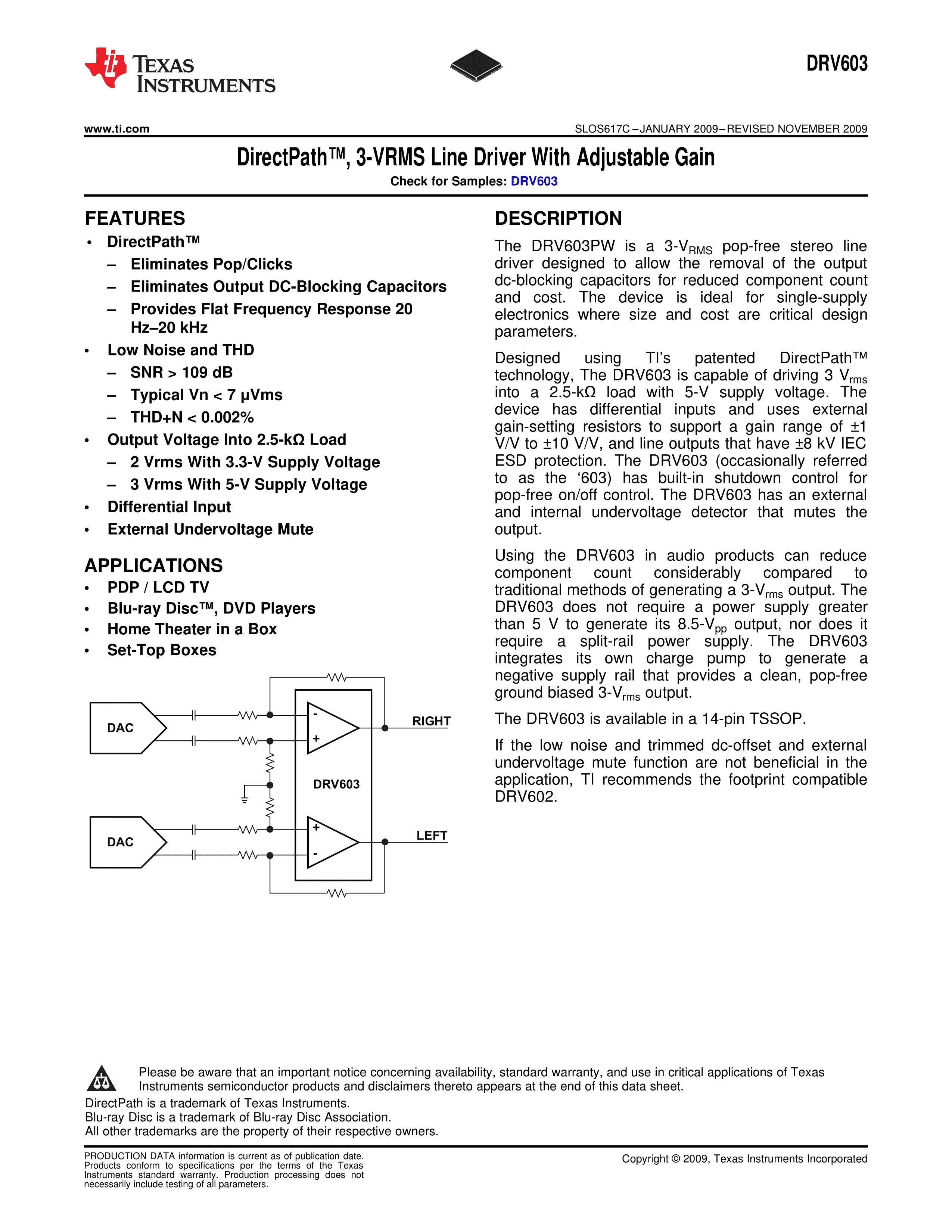 DRV603PWRG4数据手册TSSOP-14封装TI(德州仪器)PDF规格书,中英文下载