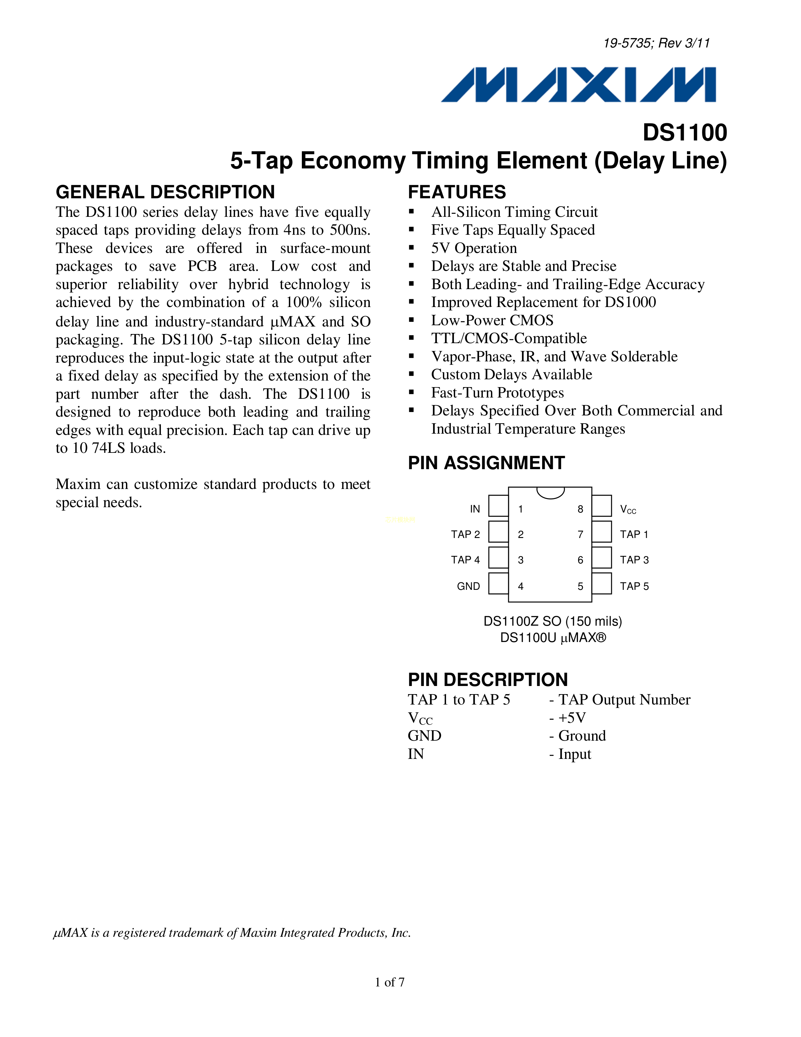 DS1100U-300+数据手册uMAX-8封装MAXIM(美信)PDF规格书,中英文下载