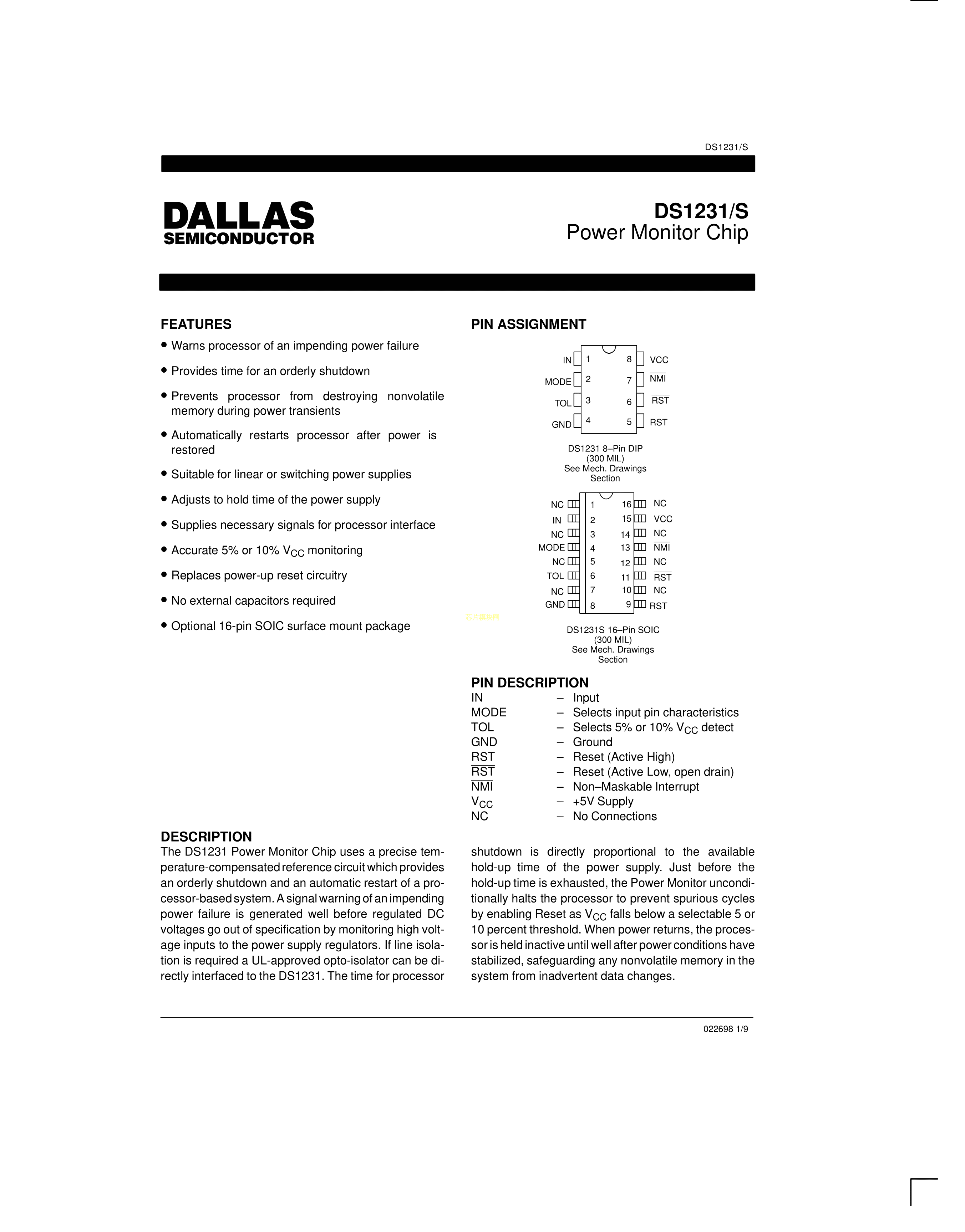 DS1231-20N+数据手册PDIP-8封装MAXIM(美信)PDF规格书,中英文下载