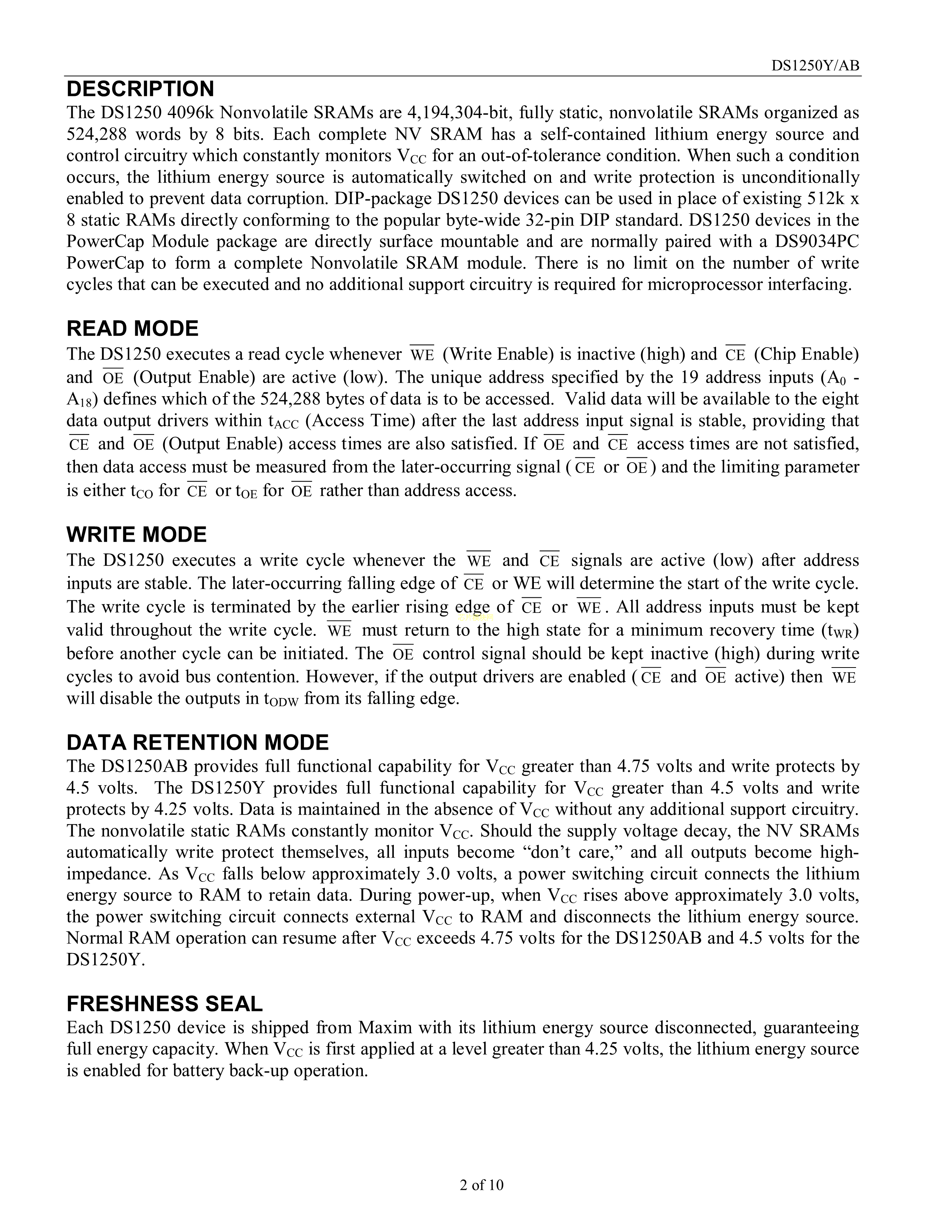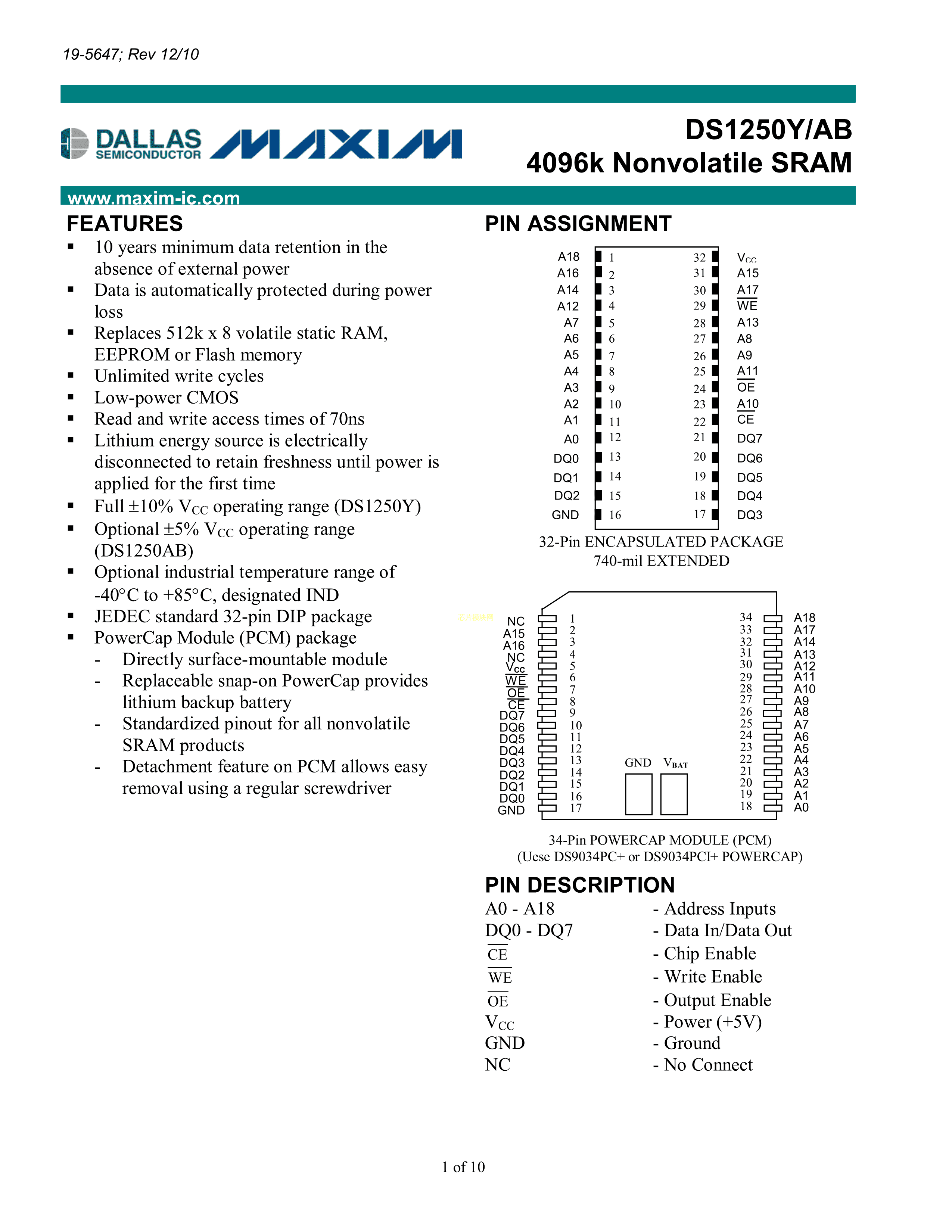 DS1250YP-70IND+数据手册Module封装MAXIM(美信)PDF规格书,中英文下载