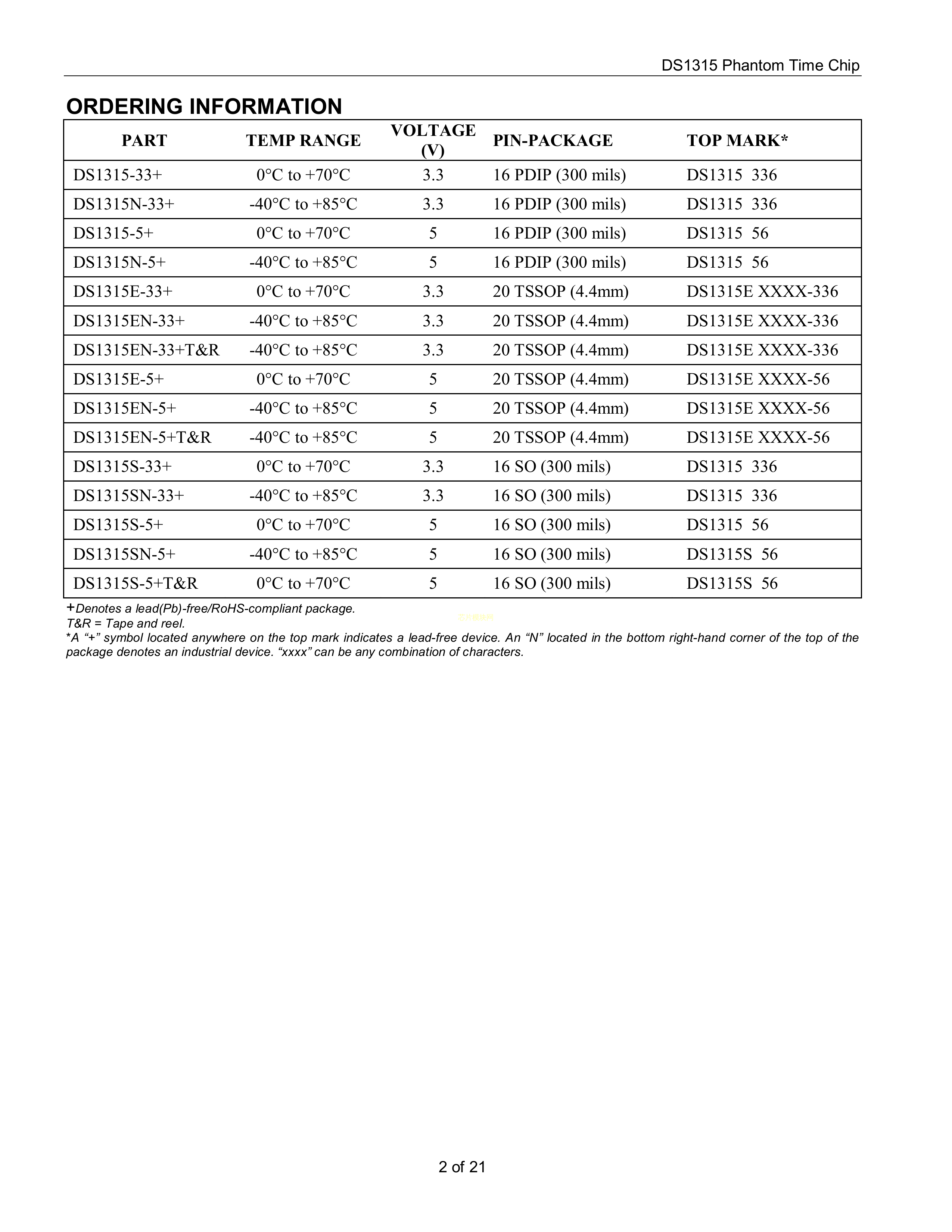 DS1315E-5+数据手册TSSOP-20封装MAXIM(美信)PDF规格书,中英文下载