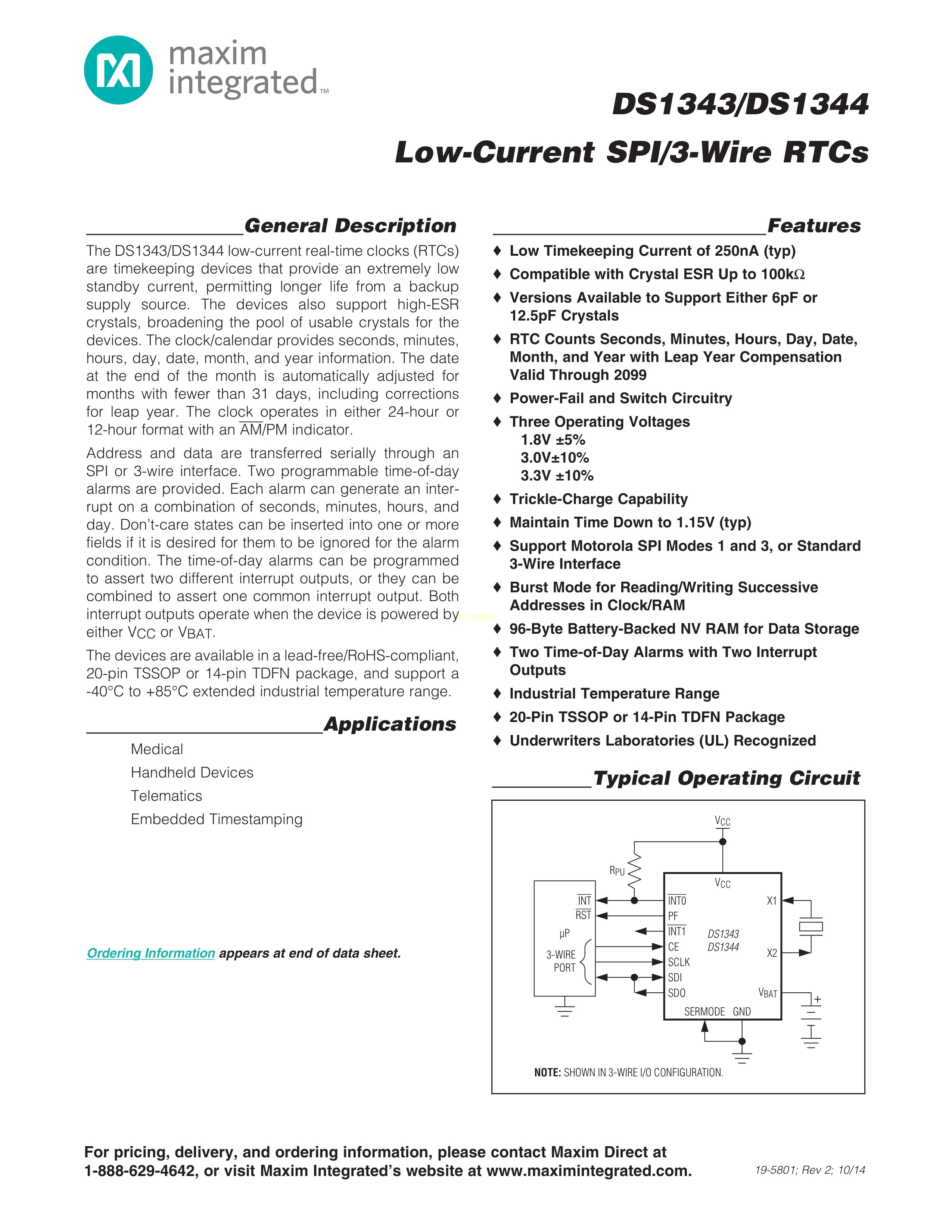 DS1344E-3+数据手册TSSOP-20封装MAXIM(美信)PDF规格书,中英文下载