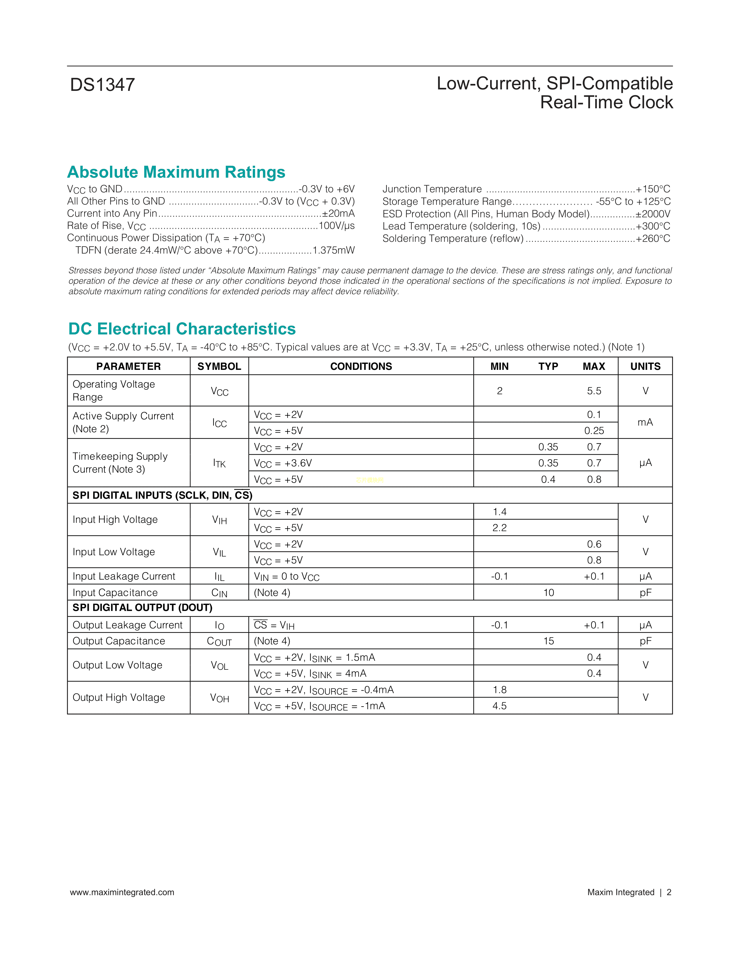 DS1347T+TR数据手册TDFN-8(3x3)封装MAXIM(美信)PDF规格书,中英文下载