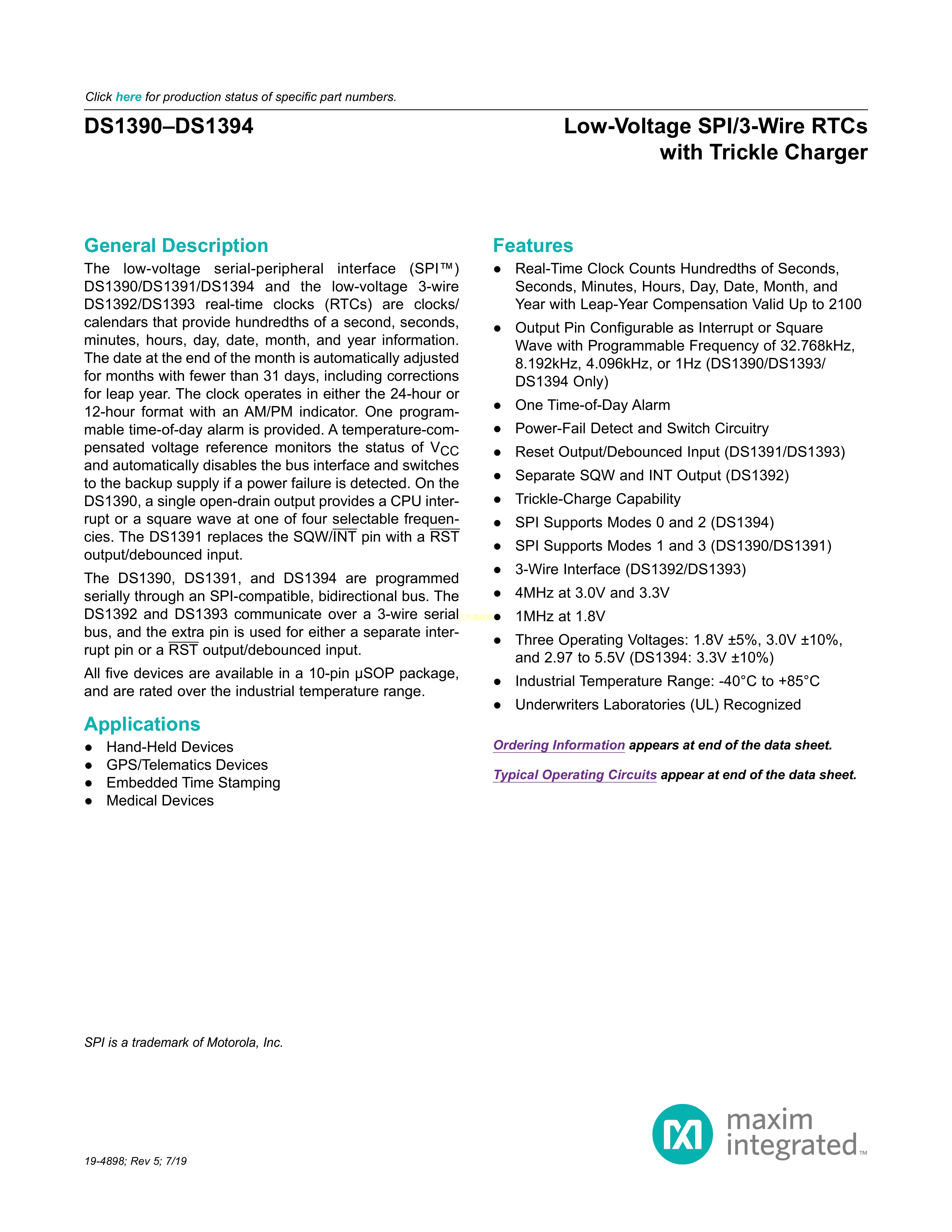 DS1390U-3+TR数据手册USOP-10封装MAXIM(美信)PDF规格书,中英文下载
