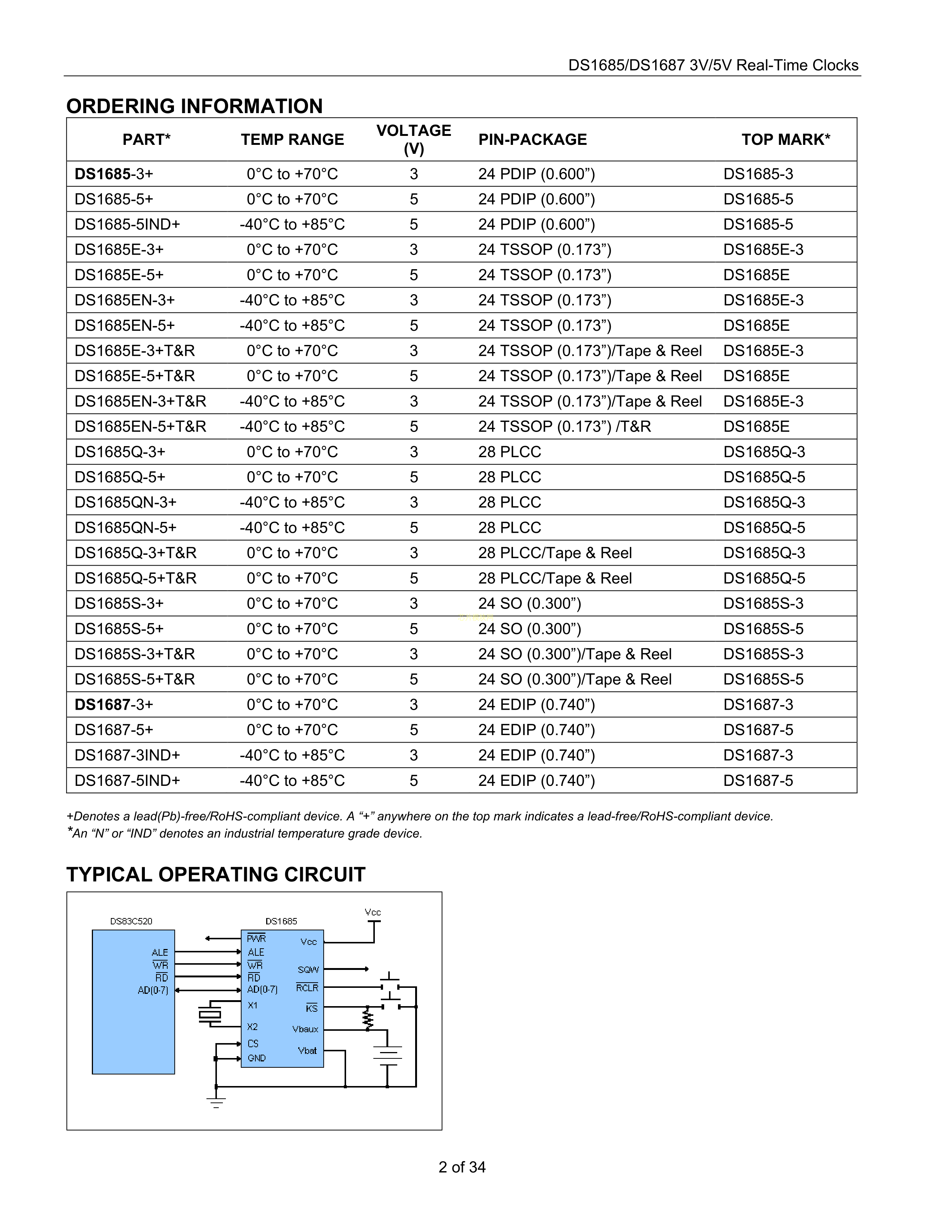 DS1685-3+数据手册PDIP-24封装MAXIM(美信)PDF规格书,中英文下载