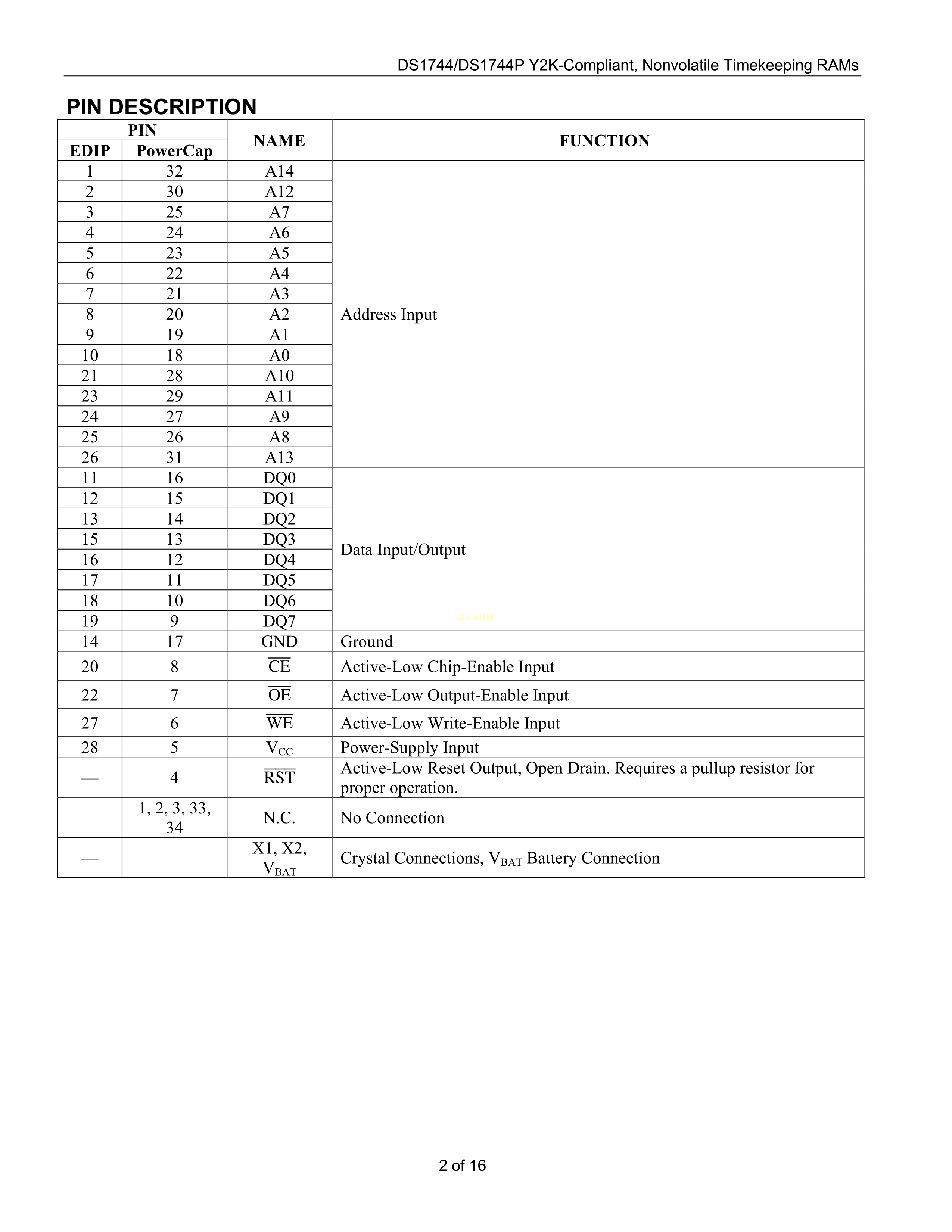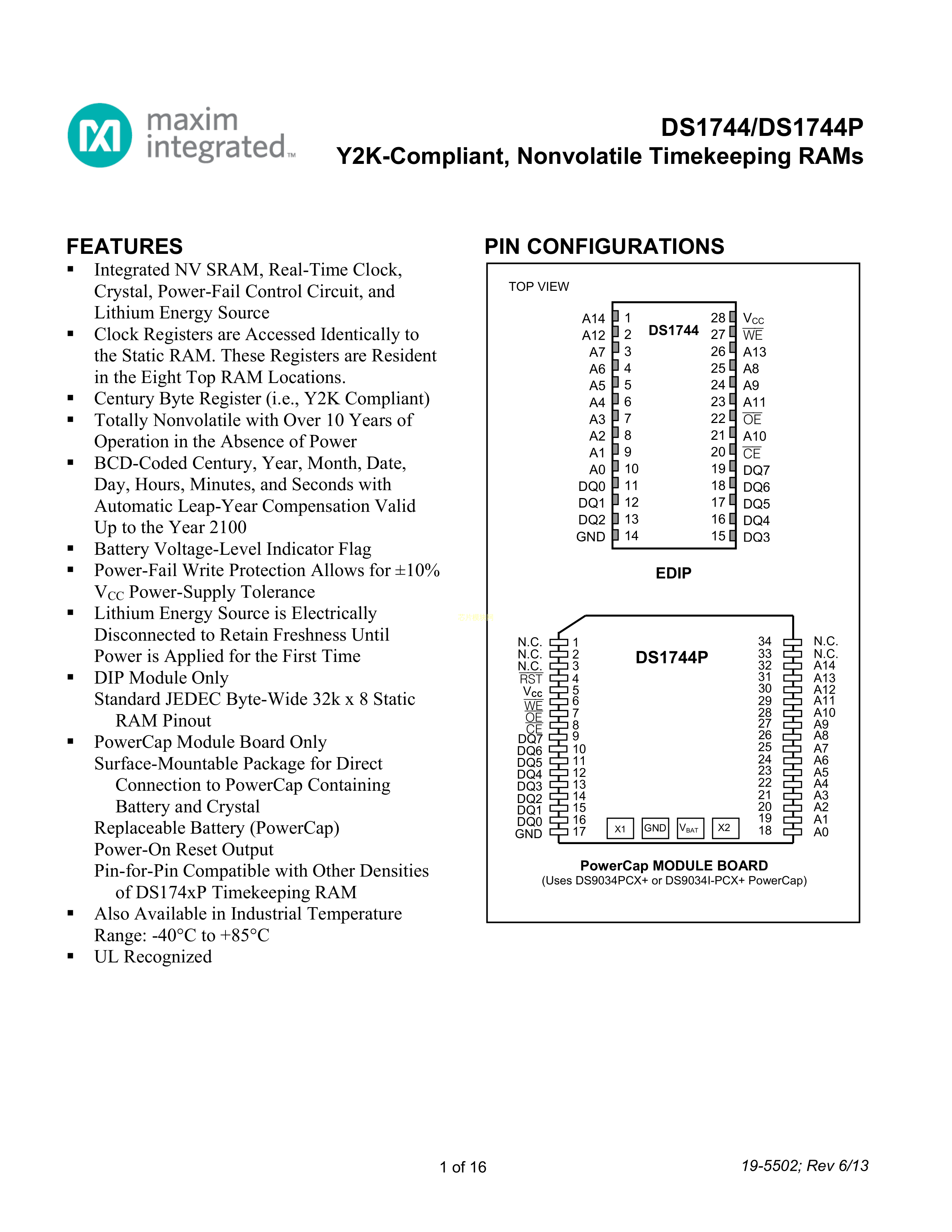 DS1744-70+数据手册EDIP-28封装MAXIM(美信)PDF规格书,中英文下载