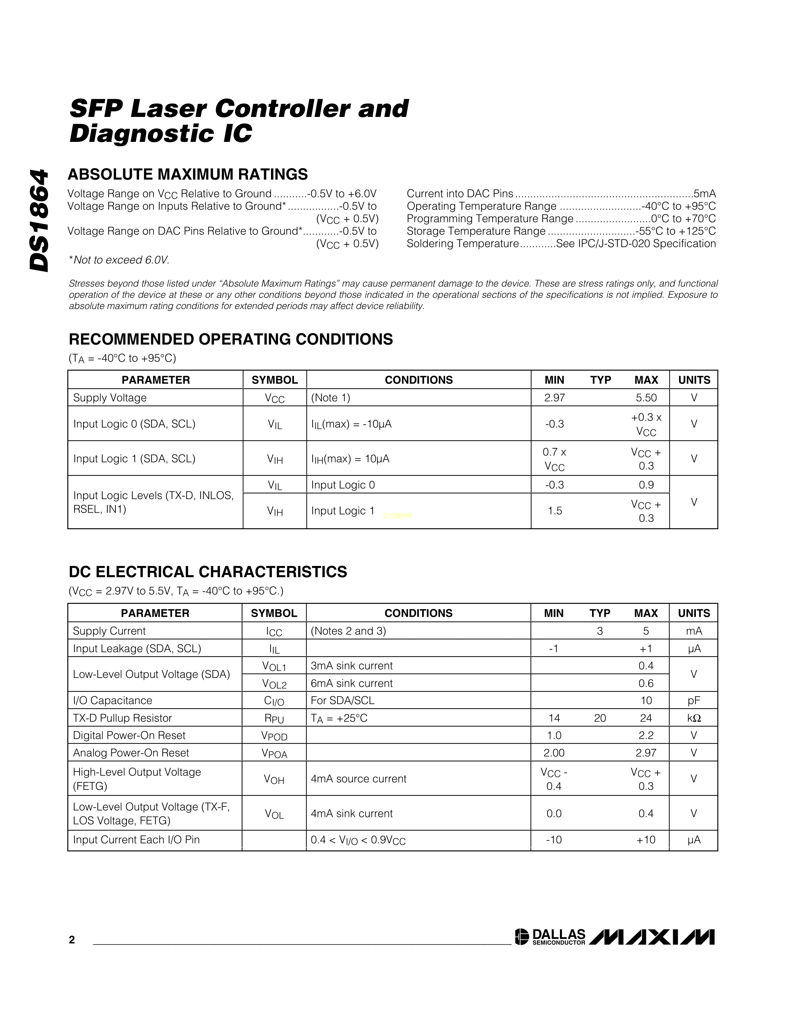 DS1864T+数据手册TQFN-28(5x5)封装MAXIM(美信)PDF规格书,中英文下载