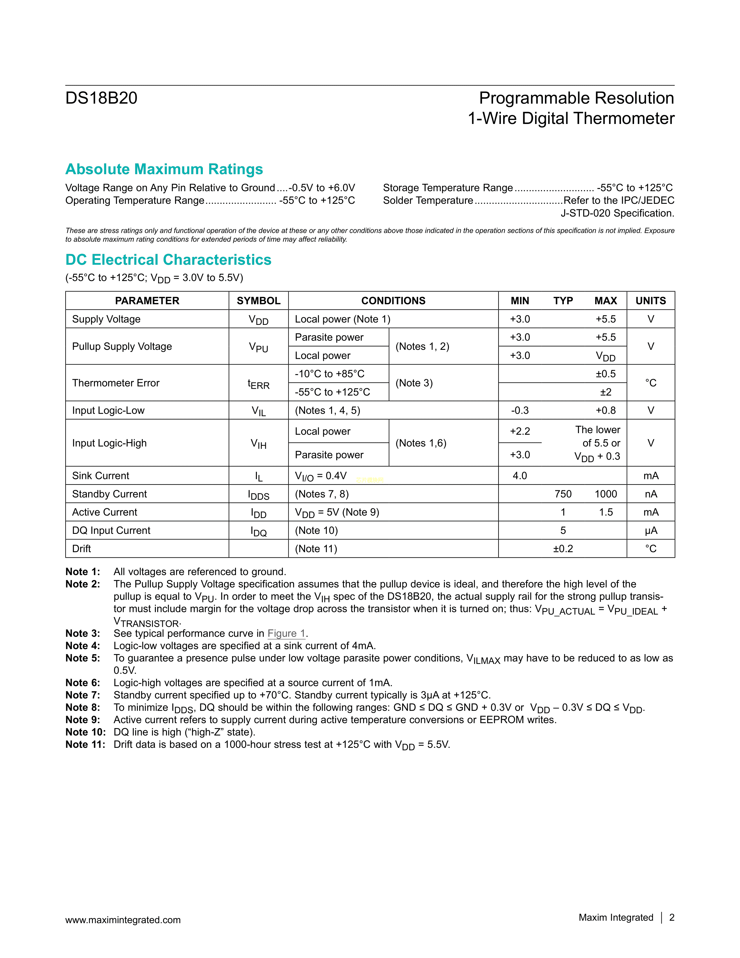 DS18B20U+TR数据手册FSOP-8封装MAXIM(美信)PDF规格书,中英文下载
