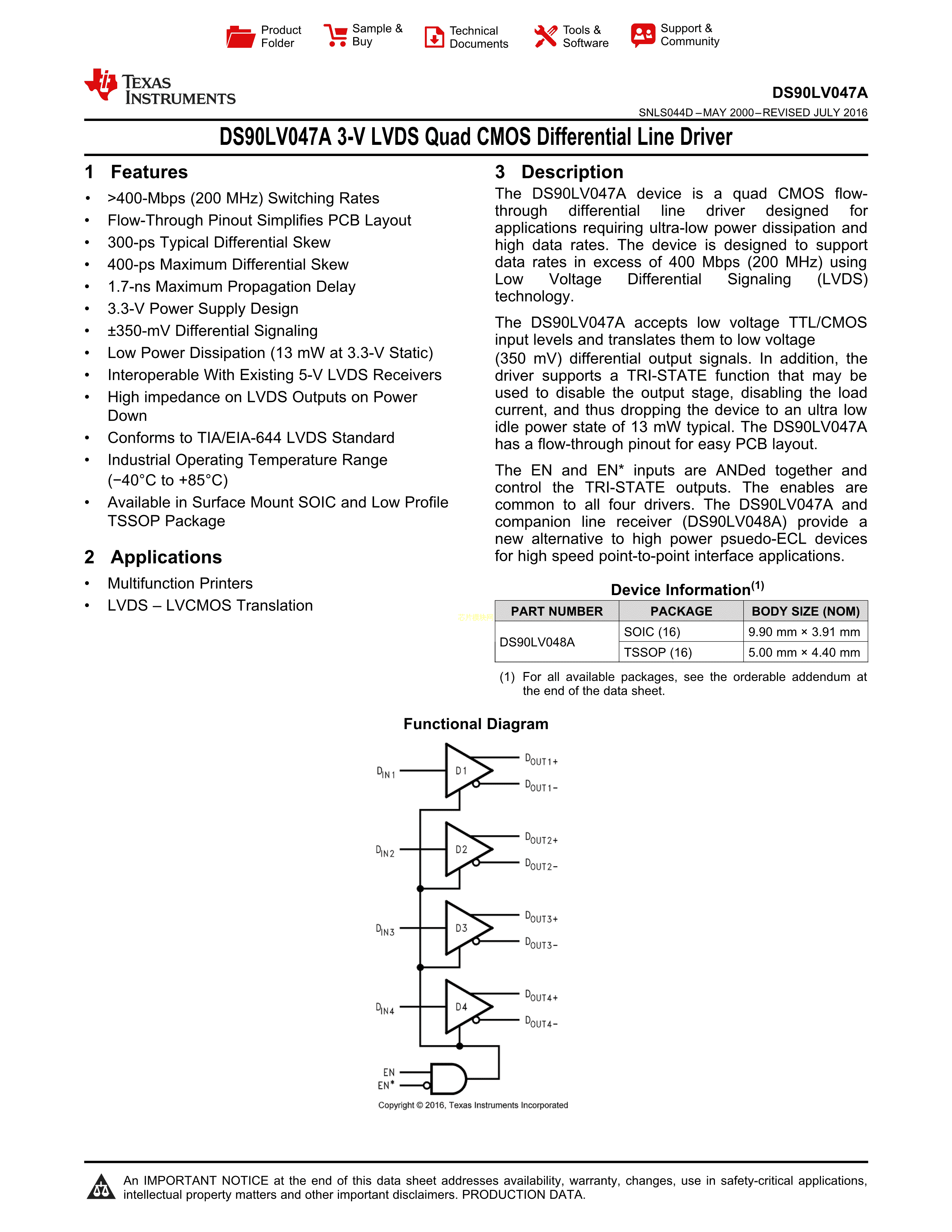 DS90LV047ATMX-NOPB数据手册SOIC-16_150mil封装TI(德州仪器)PDF规