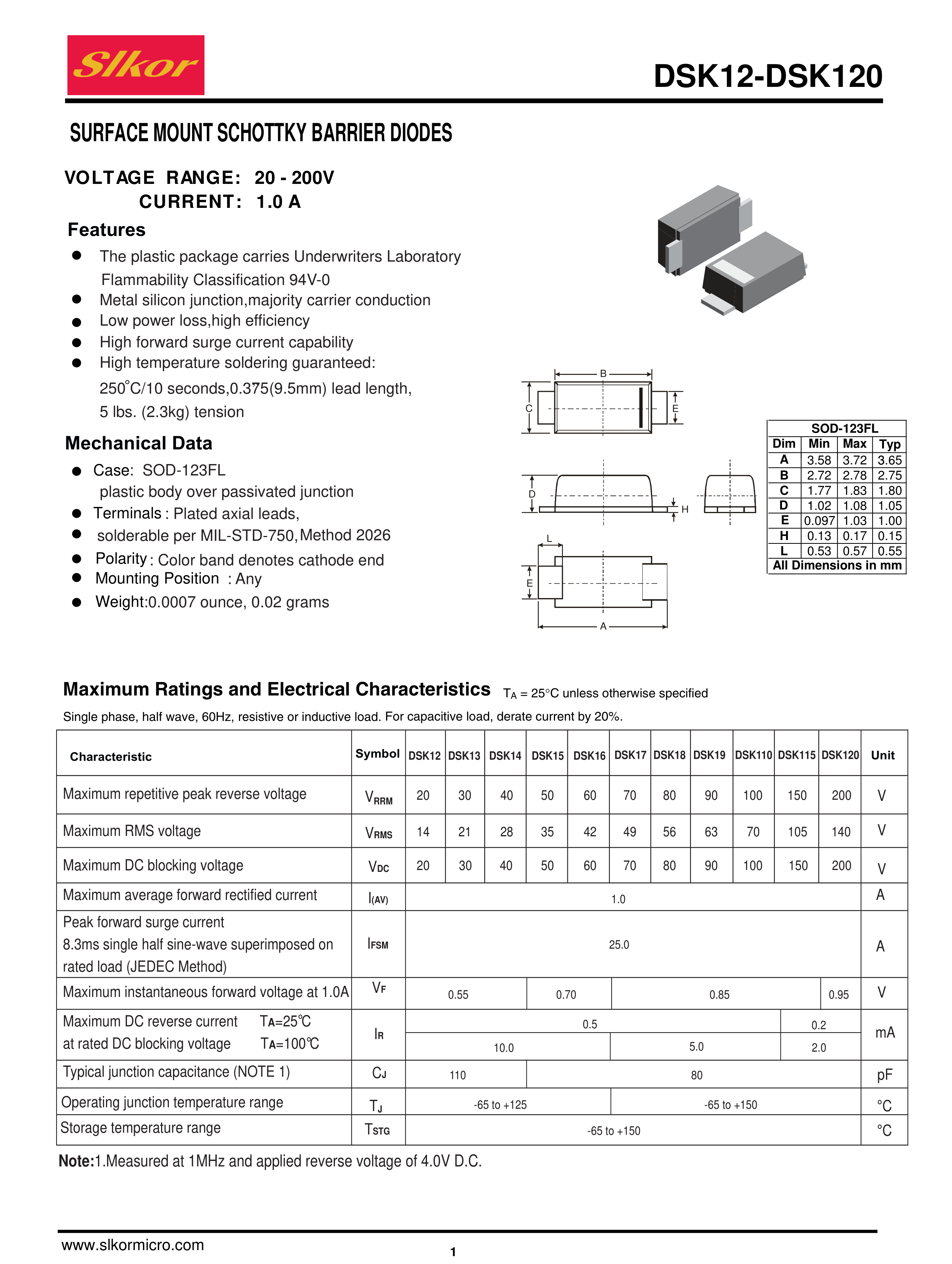 DSK110数据手册SOD-123FL封装Slkor(萨科微)PDF规格书,中英文下载