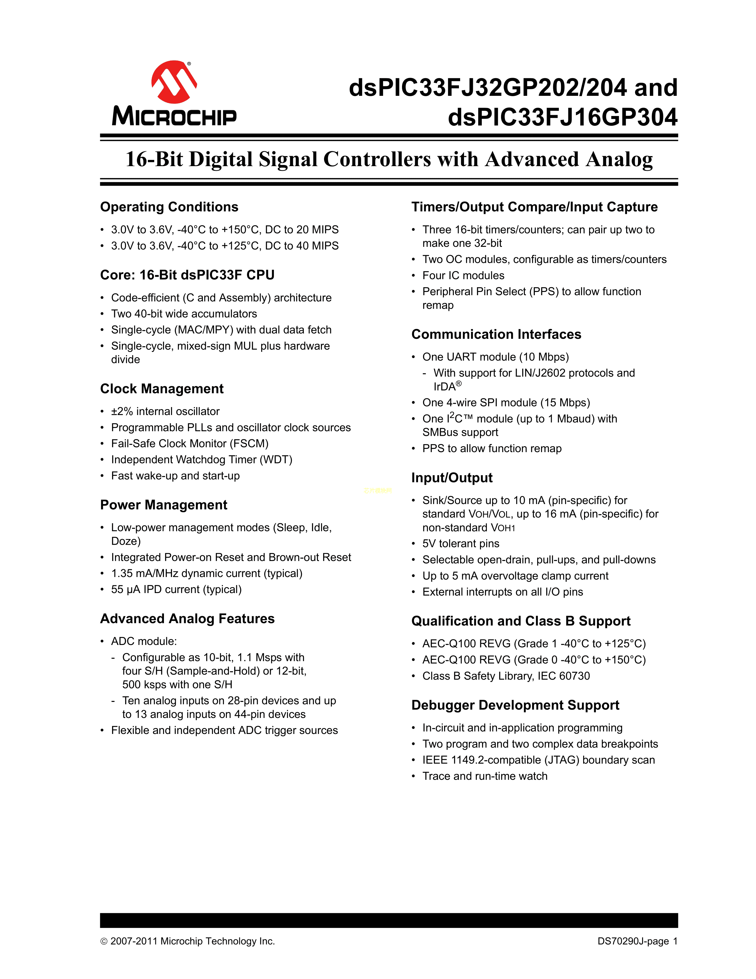 DSPIC33FJ32GP204-I-PT数据手册TQFP-44_10x10x08P封装MICROC