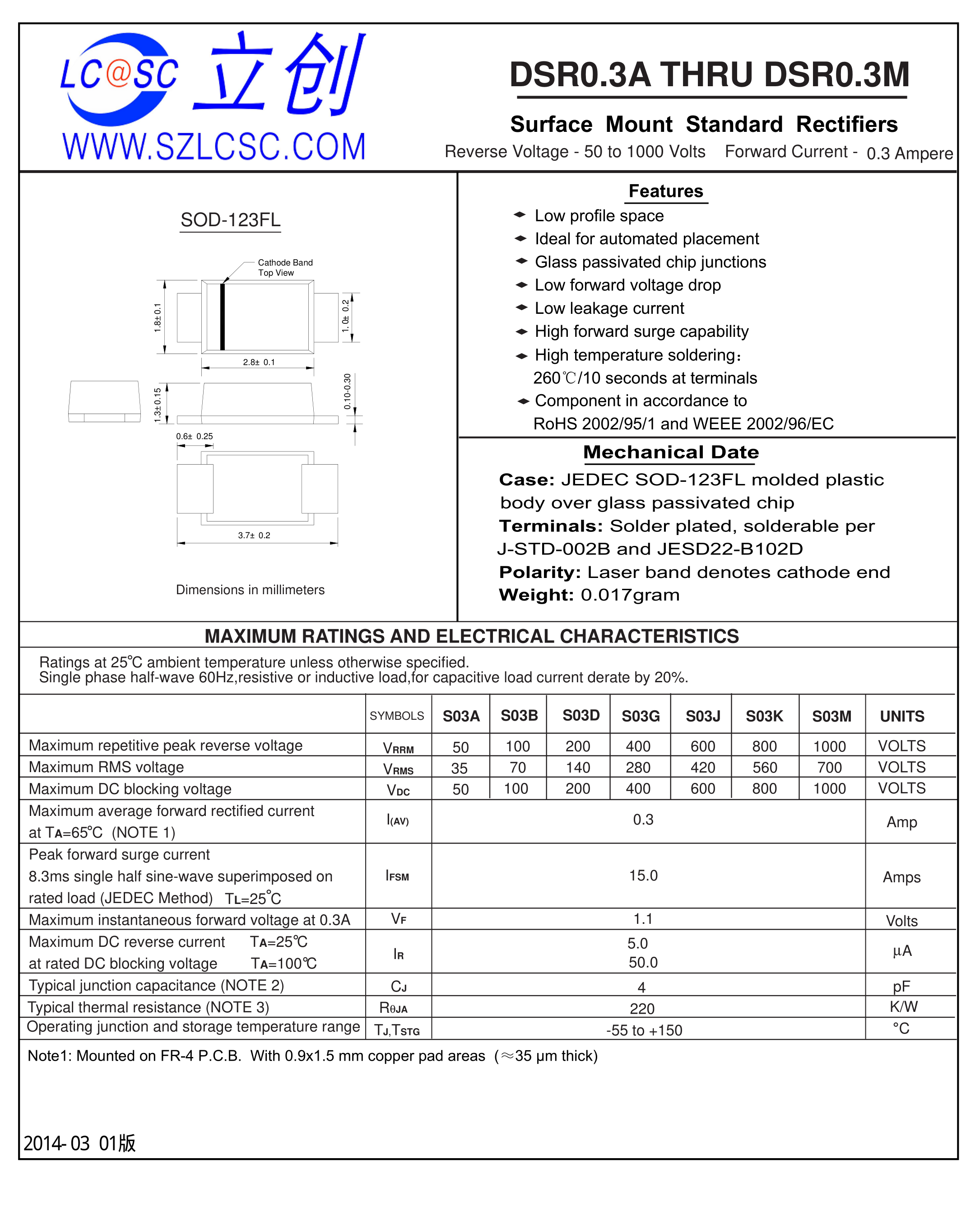 DSR0.3K S03K数据手册SOD-123F封装MDDPDF规格书,中英文下载