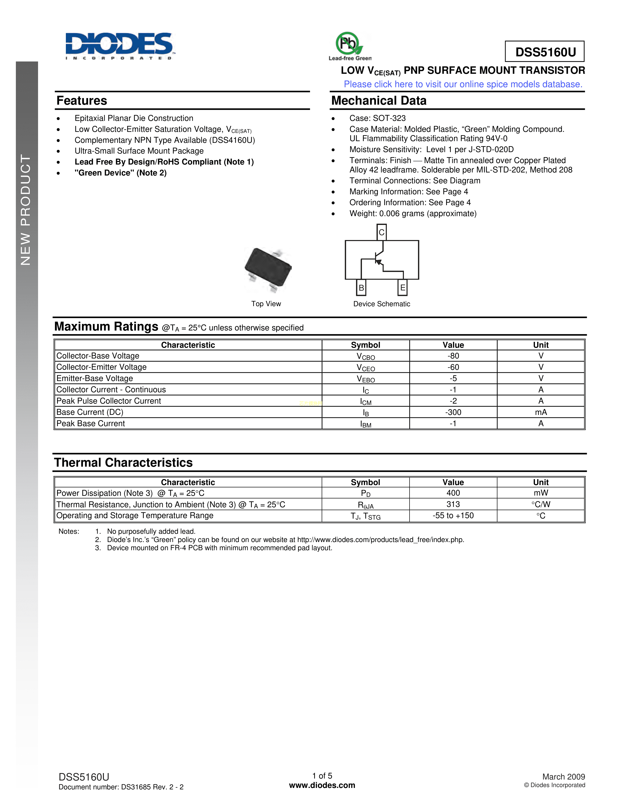 DSS5160U-7数据手册SOT-323封装DIODES(美台)PDF规格书,中英文下载