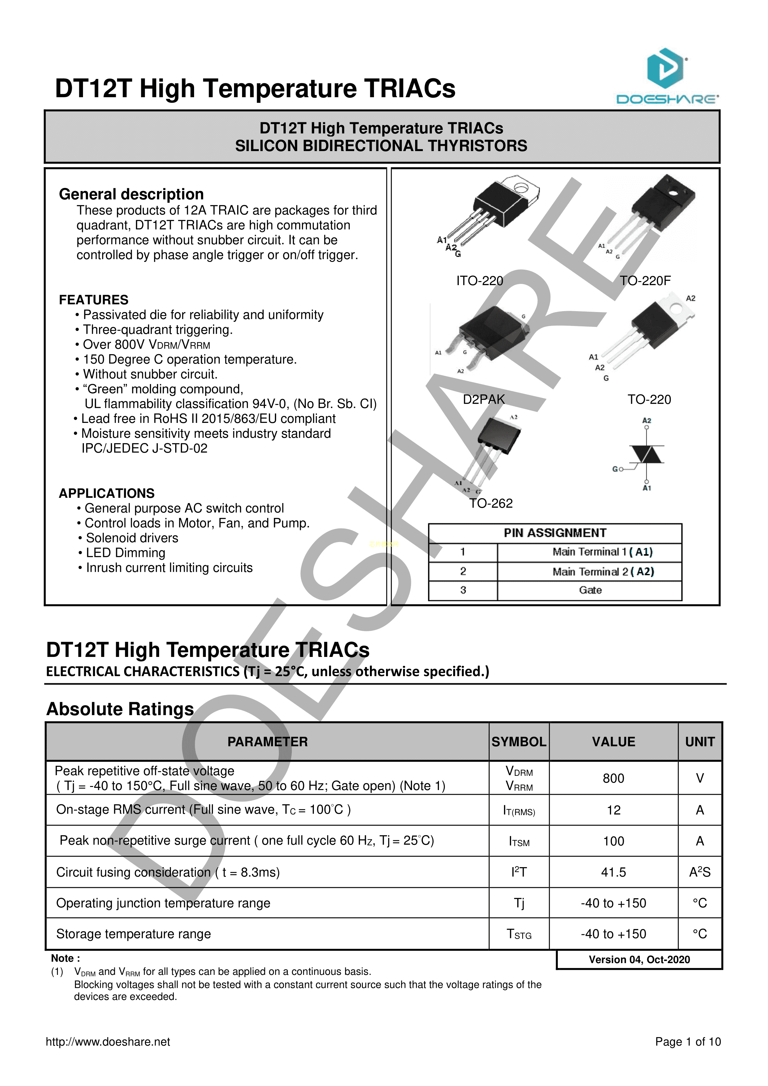 DT12T35T-BH数据手册TO-220C封装Doeshare(德芯)PDF规格书,中英文下载