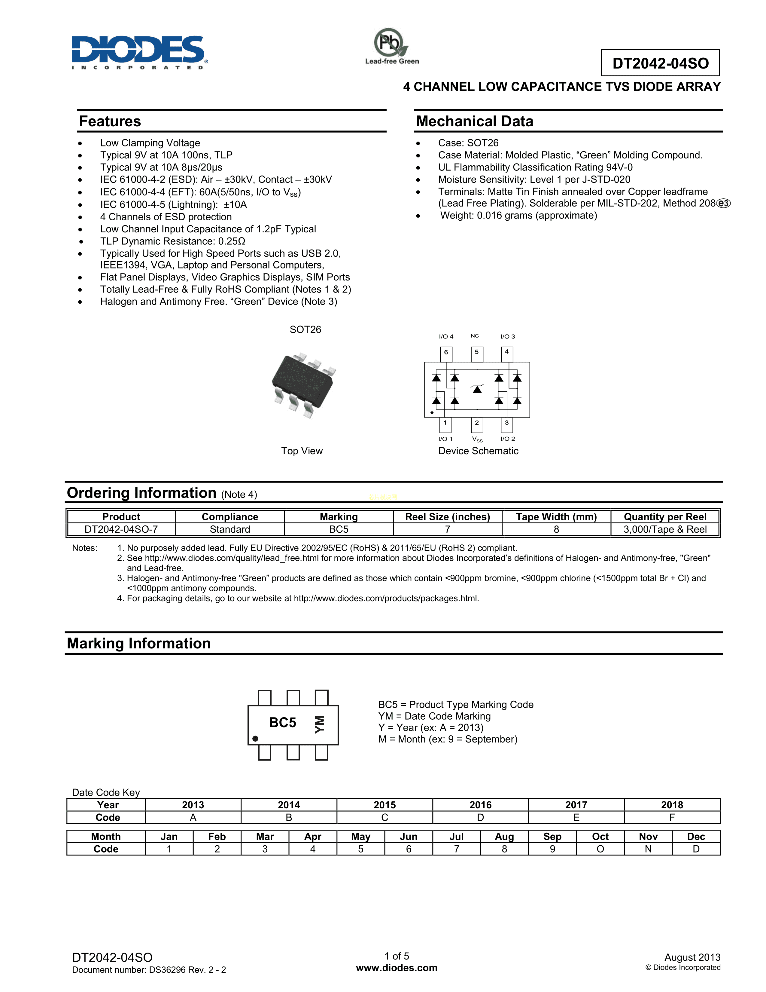 DT2042-04SO-7数据手册SOT-26封装DIODES(美台)PDF规格书,中英文下载