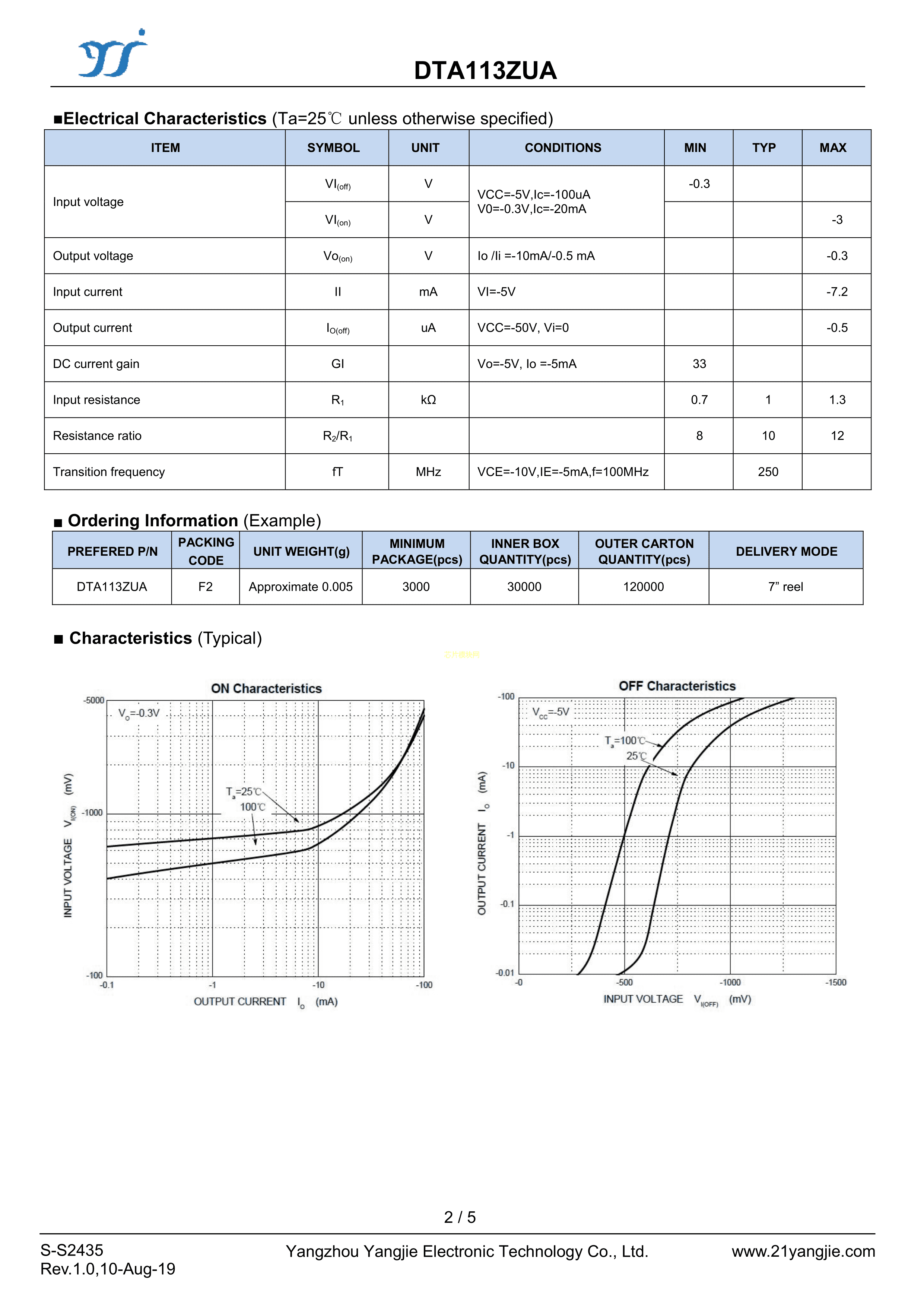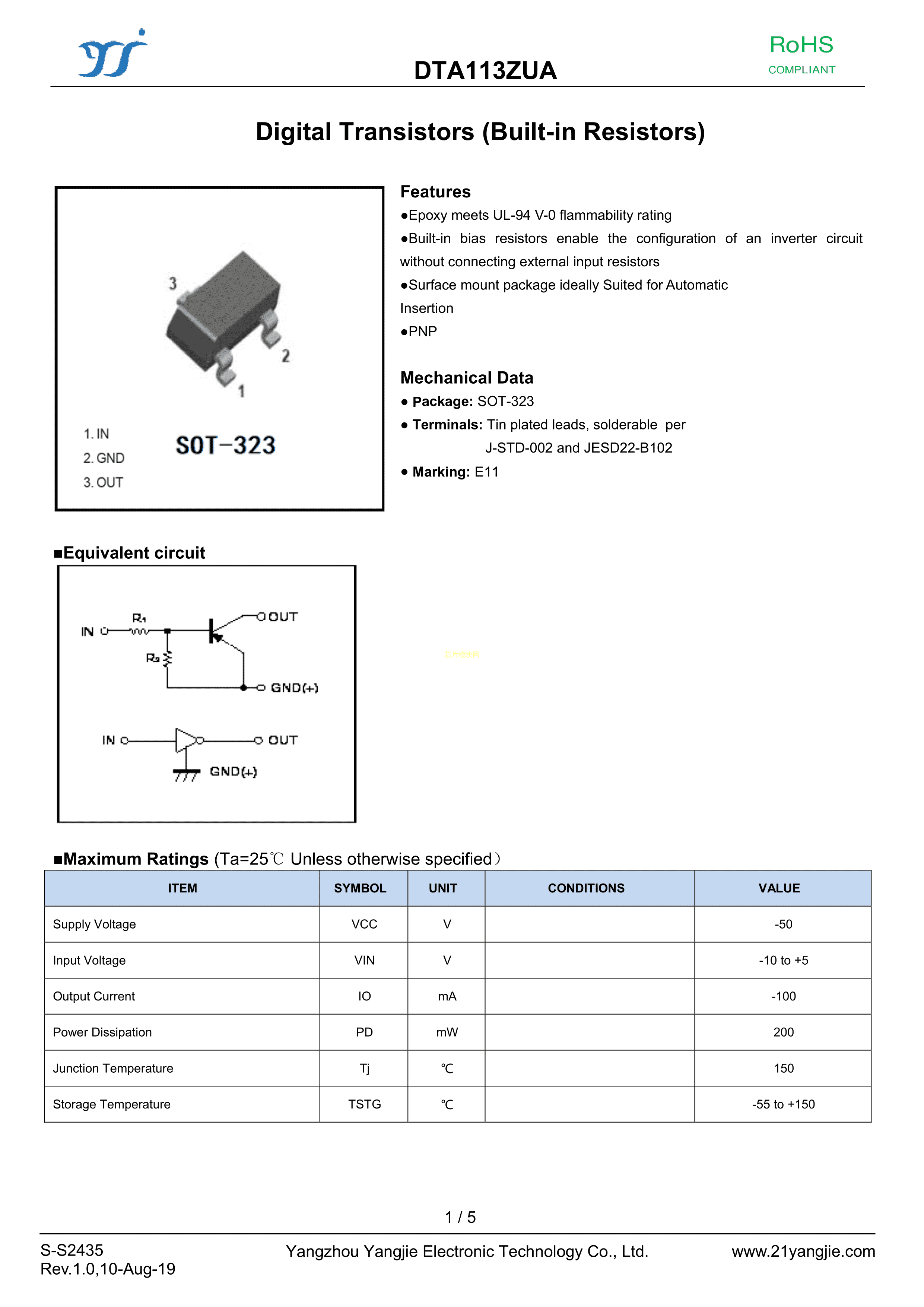 DTA113ZUA数据手册SOT-323封装YANGJIE(扬杰)PDF规格书,中英文下载