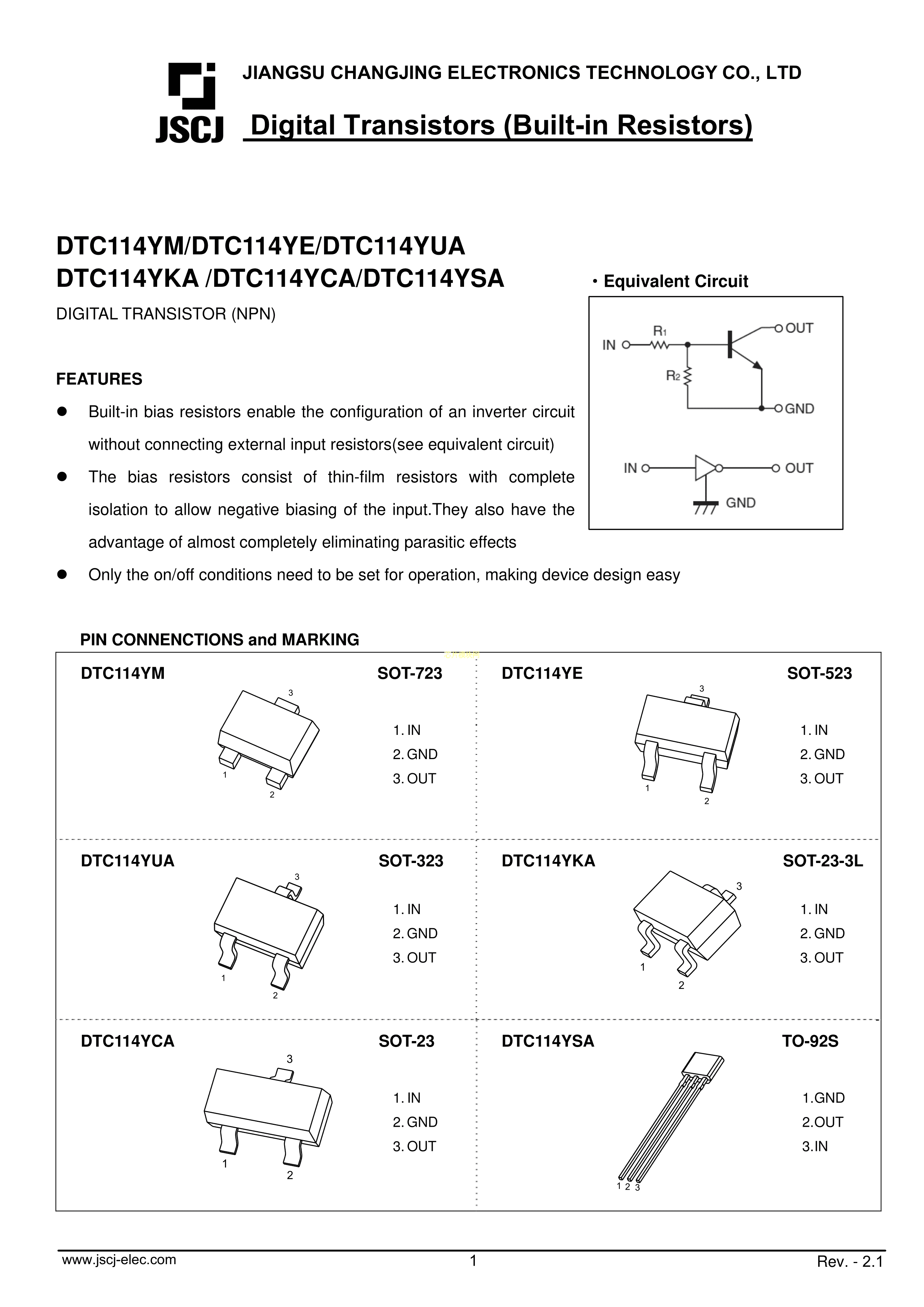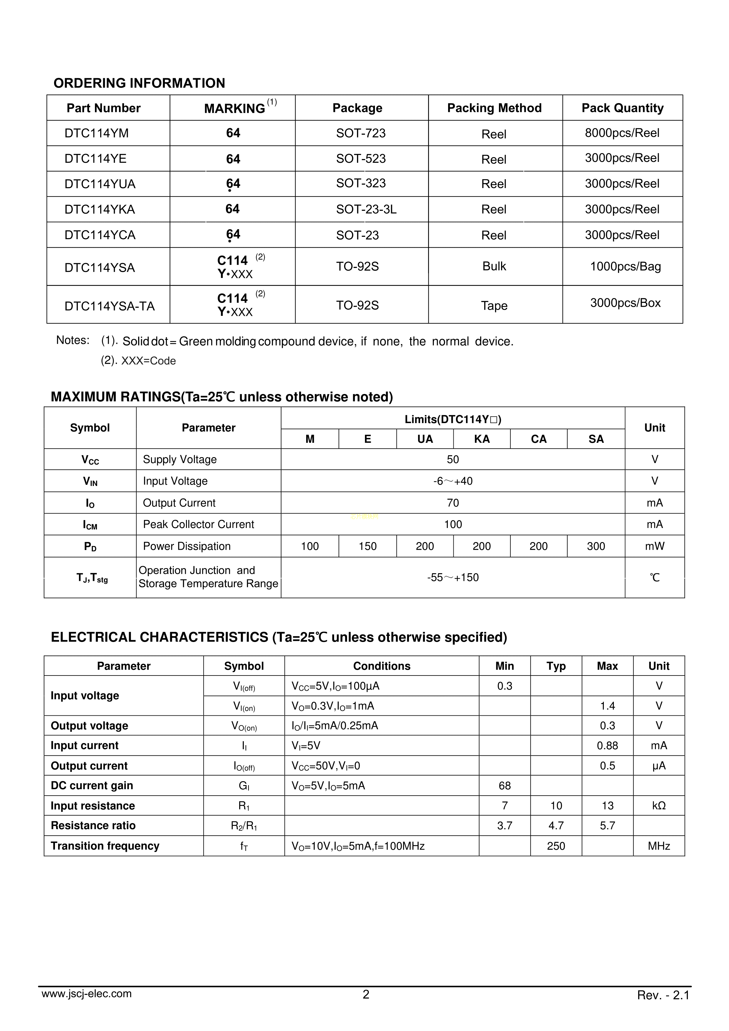 DTC114YM数据手册SOT-723封装CJ(江苏长电-长晶)PDF规格书,中英文下载