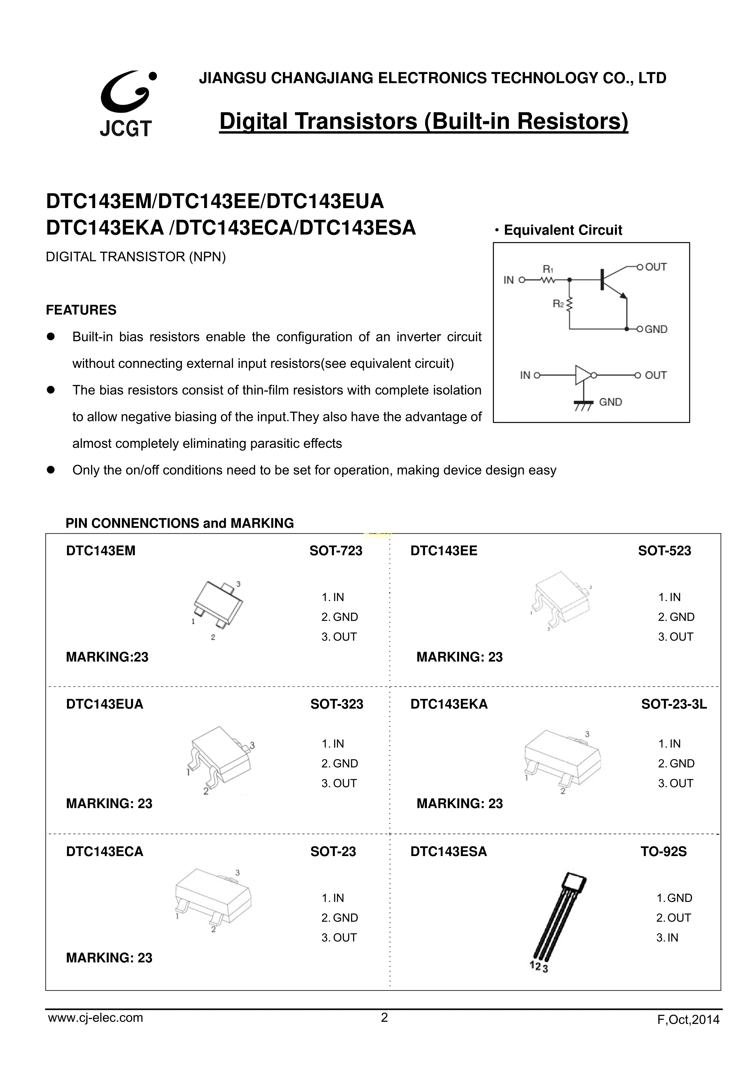DTC143EUA数据手册SC-70(SC-70-3)封装CJ(江苏长电-长晶)PDF规格书,中英文下载