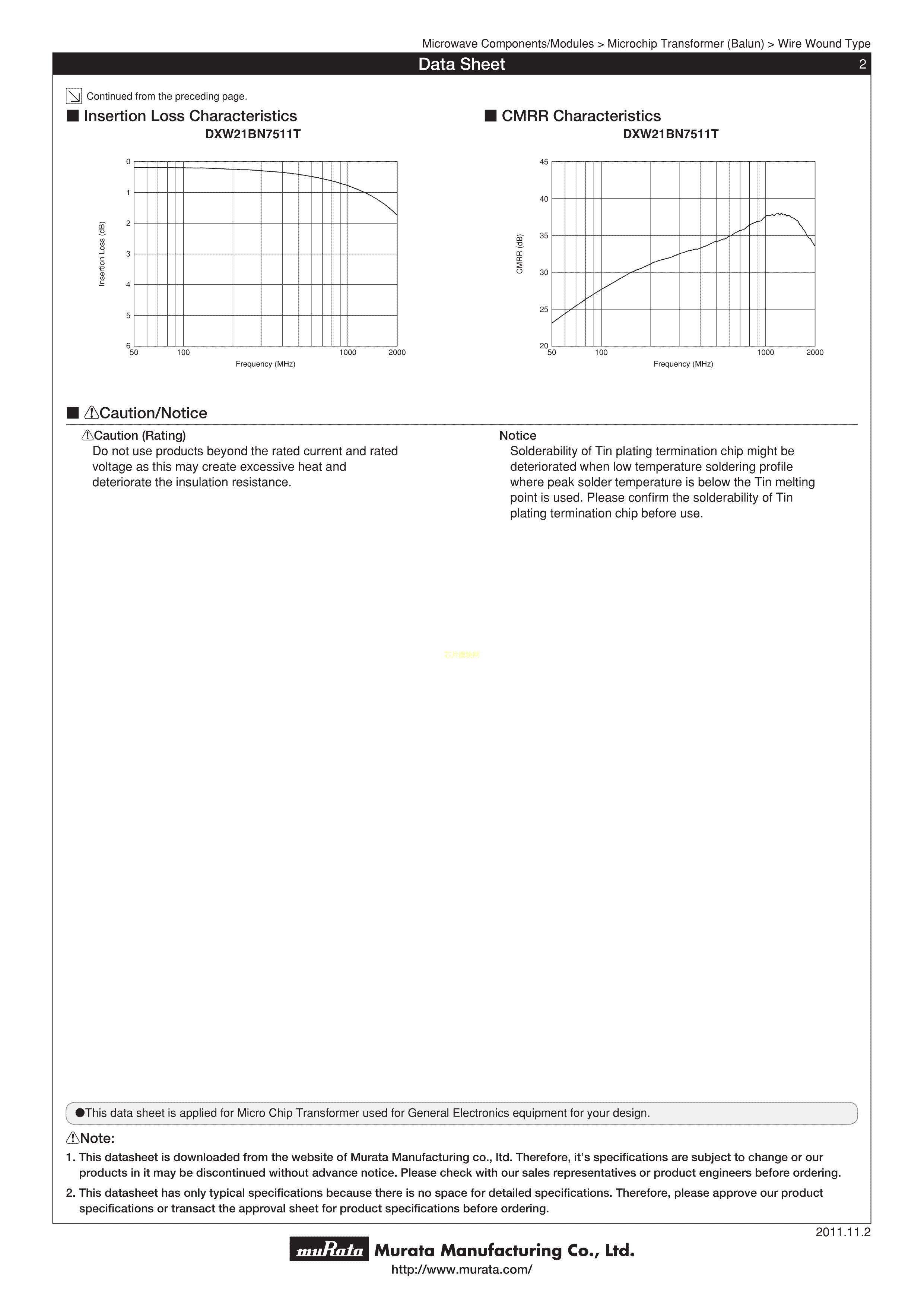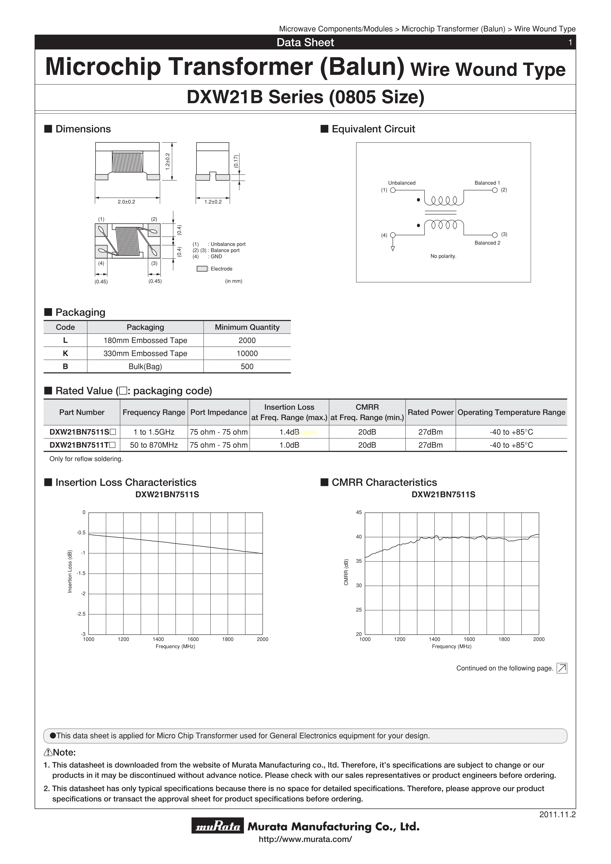 DXW21BN7511TL数据手册0805封装muRata(村田)PDF规格书,中英文下载